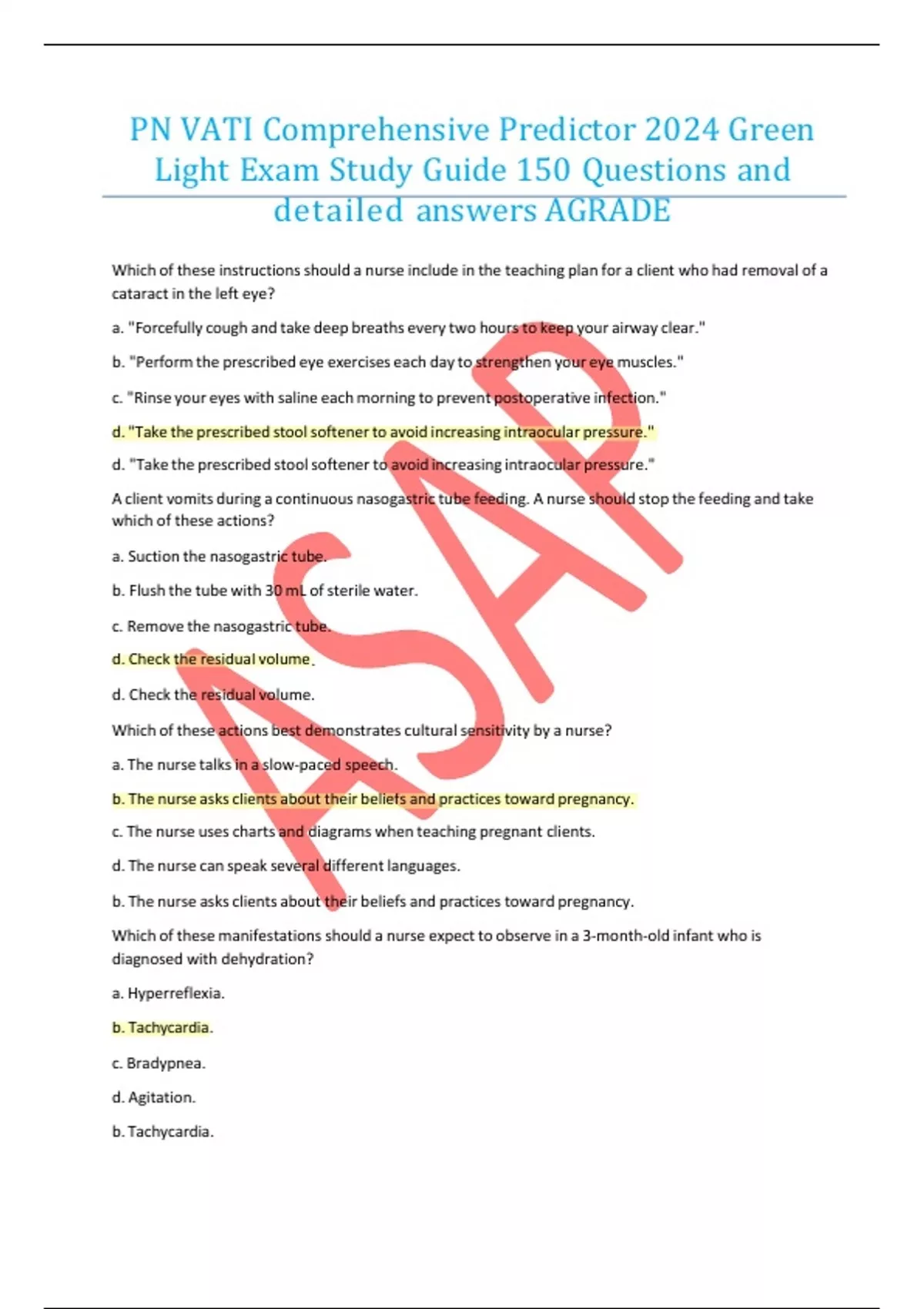 PN VATI Comprehensive Predictor 2024 Green Light Exam Study Guide 150 Questions and detailed answers AGRADE