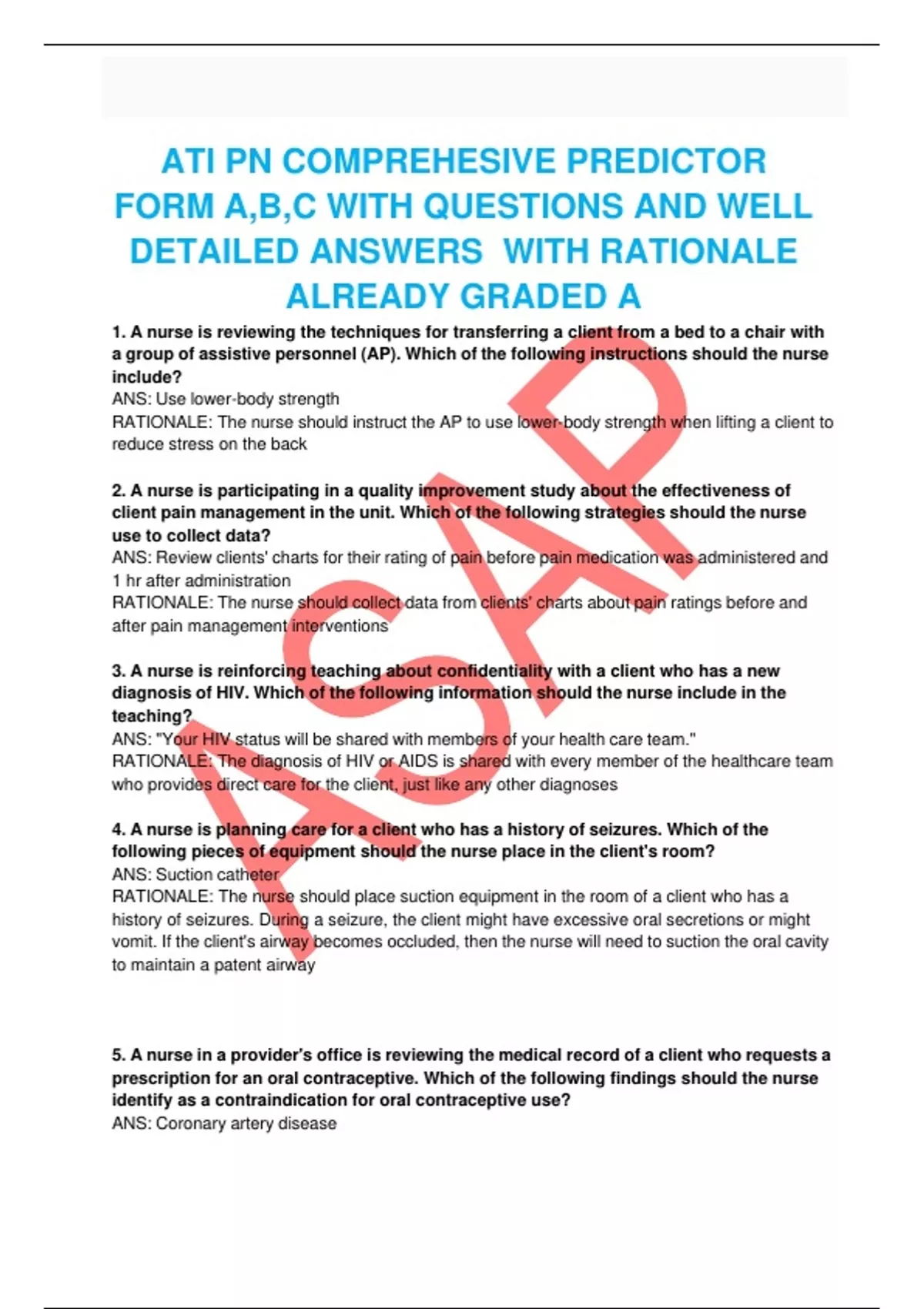 ATI PN COMPREHESIVE PREDICTOR FORM A,B,C WITH QUESTIONS AND WELL DETAILED ANSWERS WITH RATIONALE ALREADY GRADED A