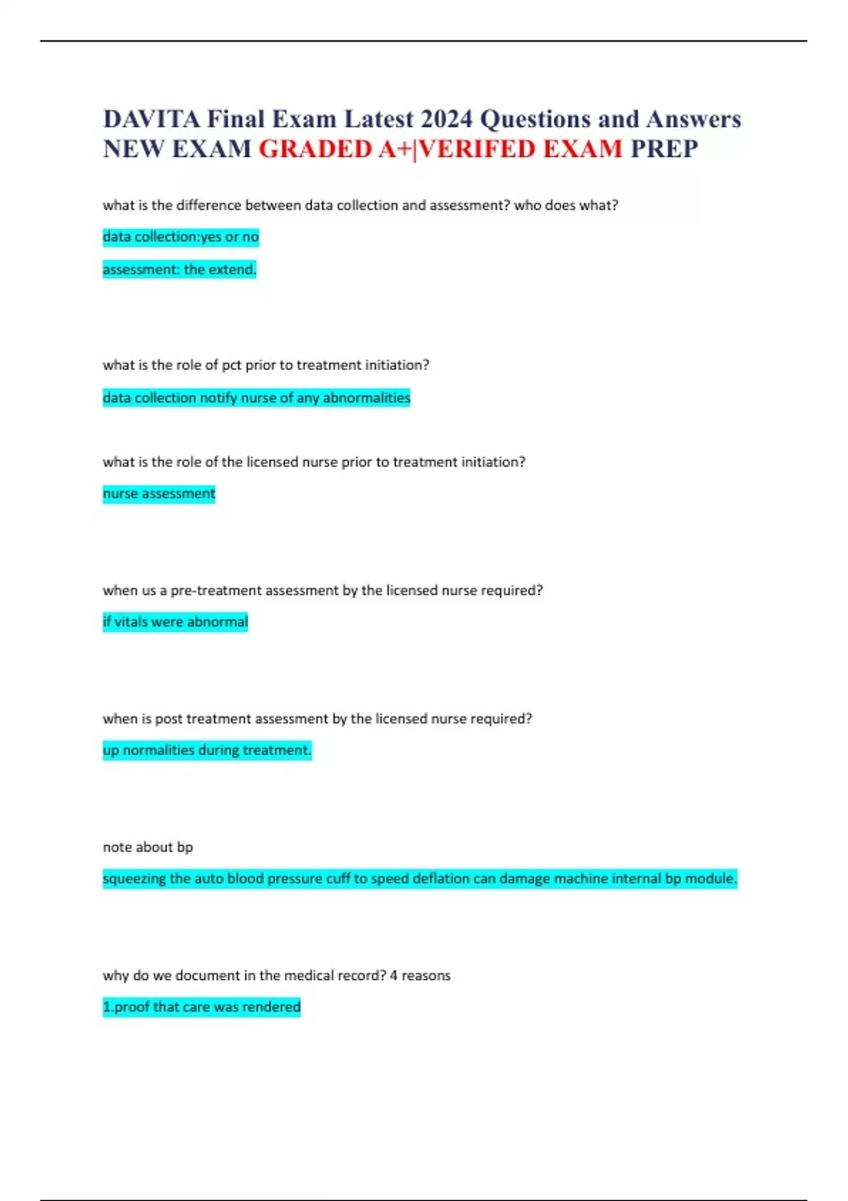 DAVITA Final Exam Latest 2024 Questions and Answers NEW EXAM GRADED A+|VERIFED EXAM PREP