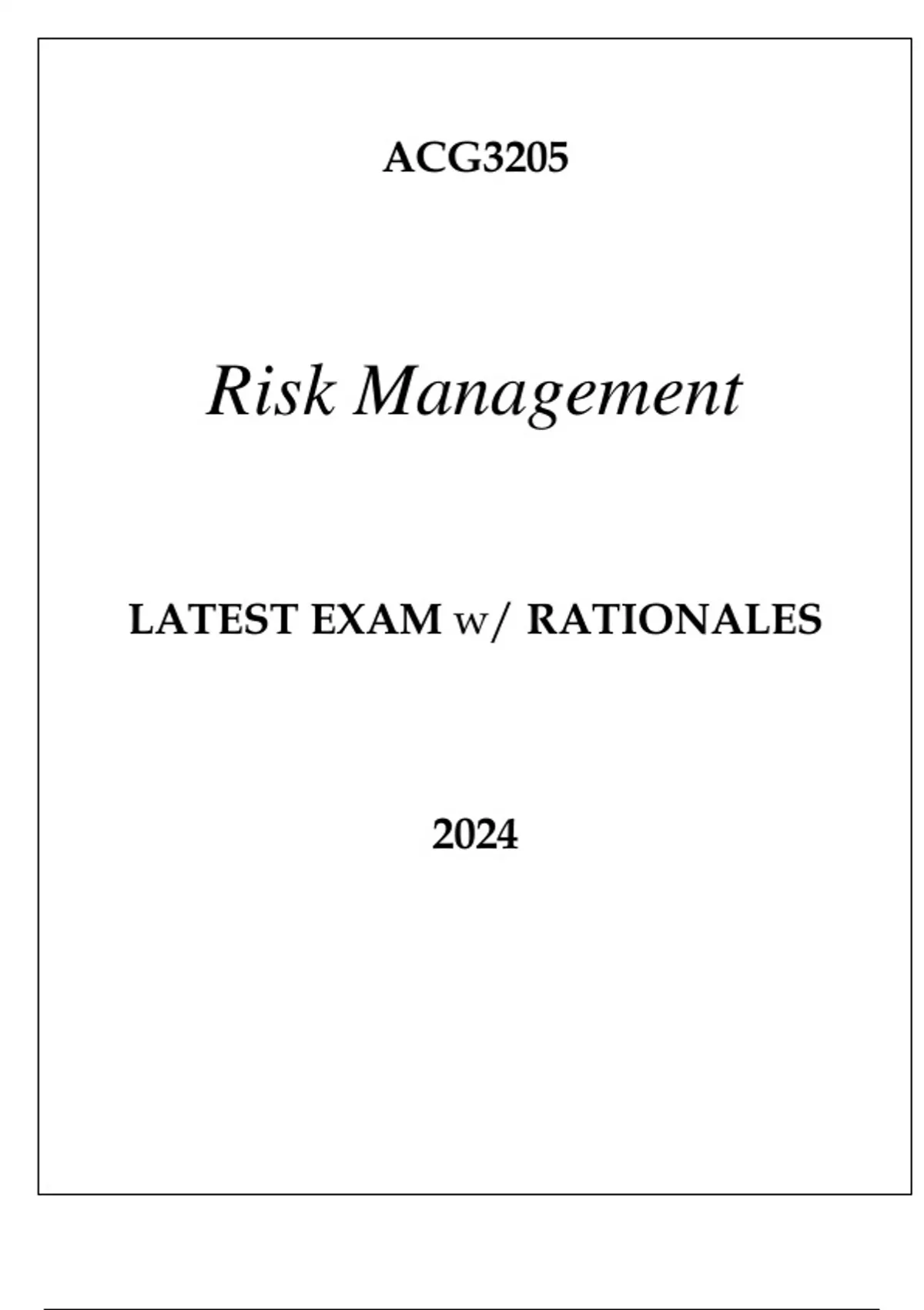 ACG3205 RISK MANAGEMENT LATEST EXAM WITH RATIONALES 2024