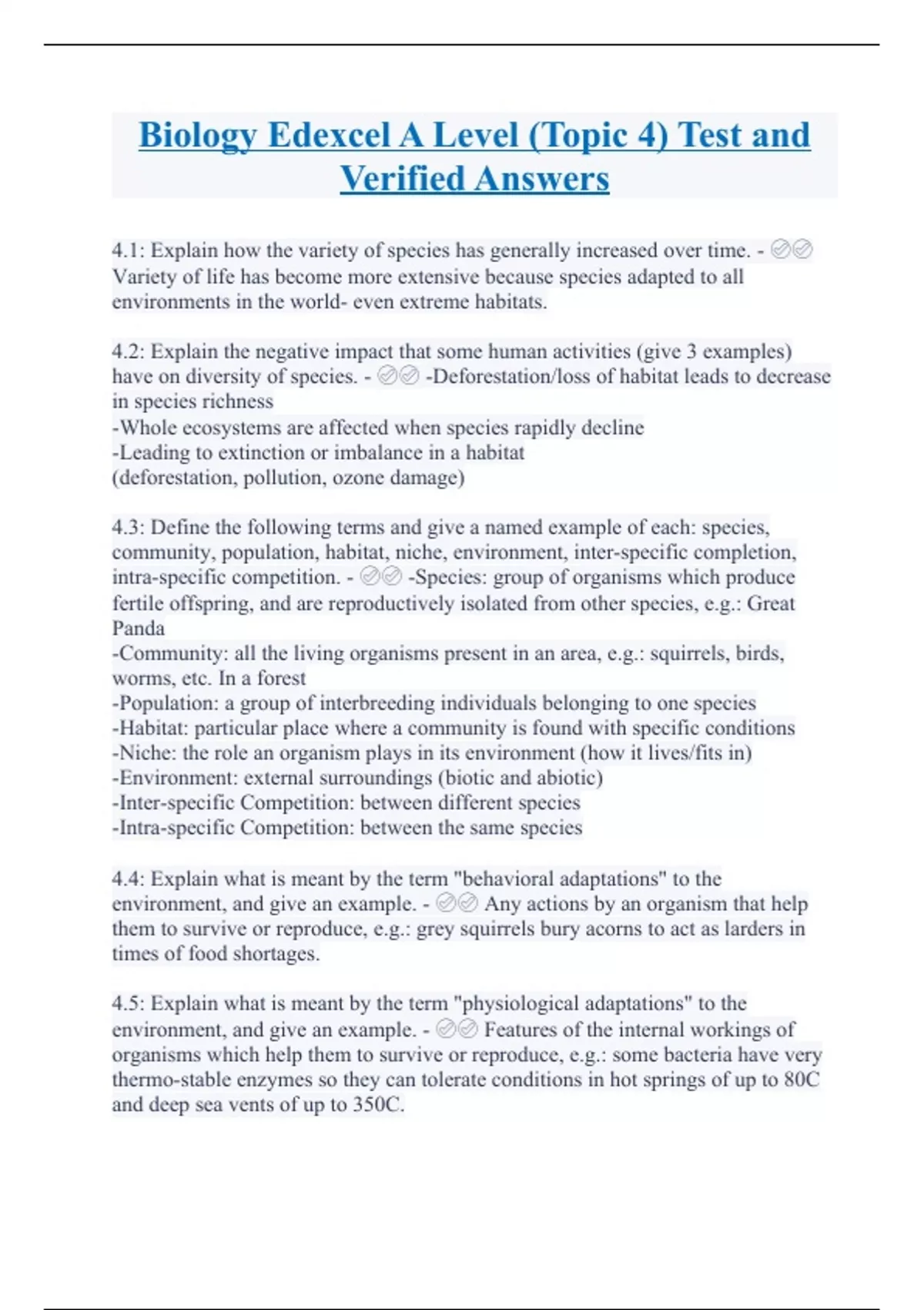 Biology Edexcel A Level (Topic 4) Test and Verified Answers