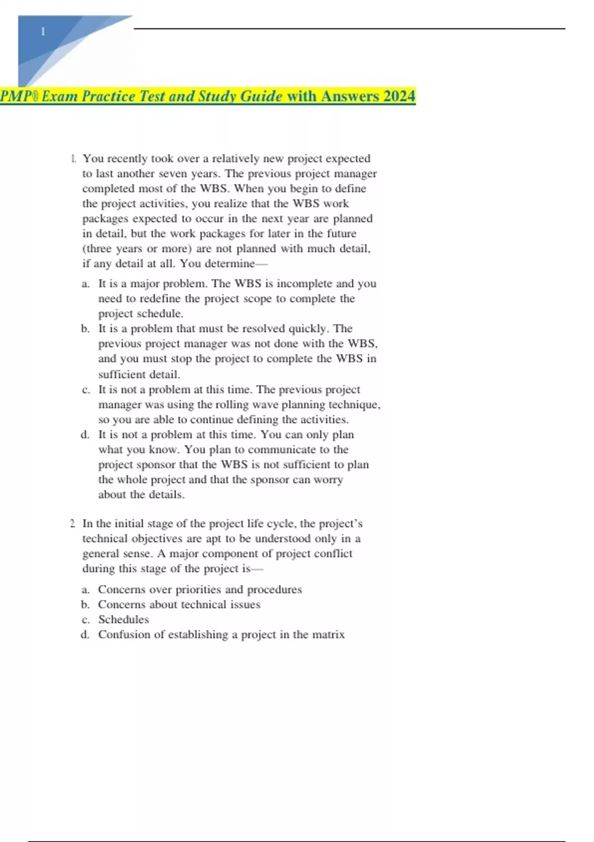 PMP® Exam Practice Test and Study Guide with Answers 2024.