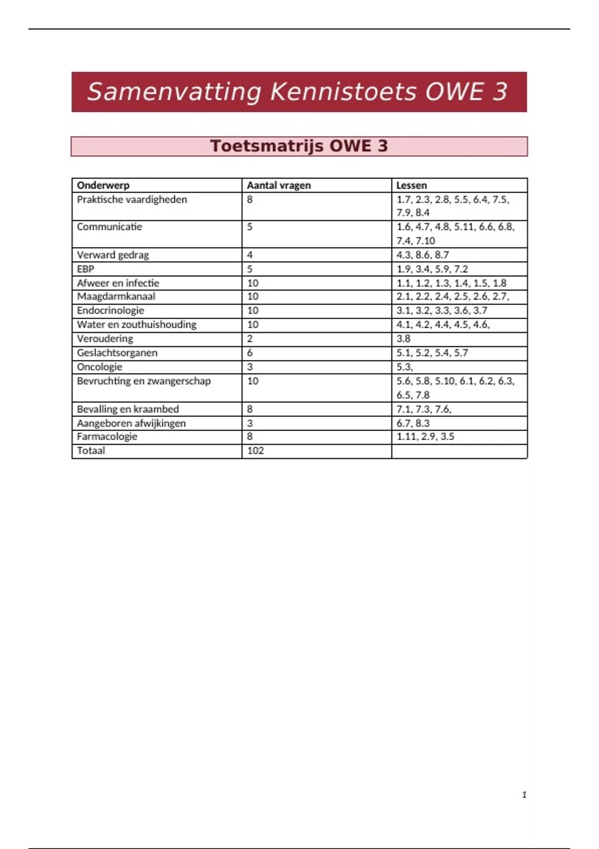 Samenvatting Kennistoets OWE 3