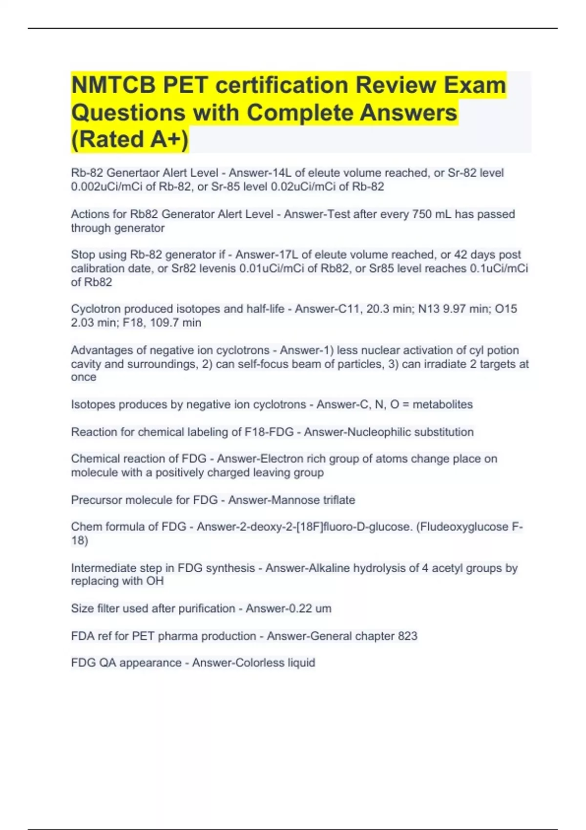 NMTCB PET certification Review Exam Questions with Complete Answers (Rated A+)