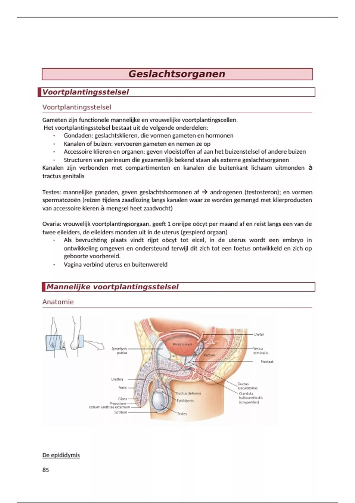Testes: mannelijke gonaden, geven geslachtshormonen af androgenen (testosteron); en vormen