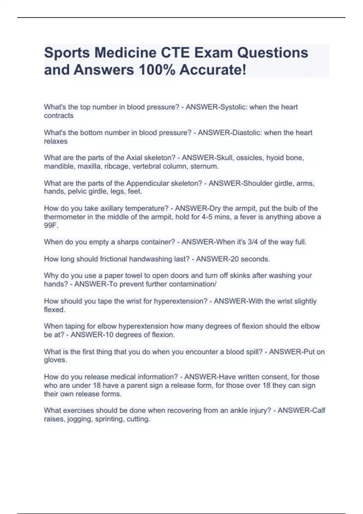 Sports Medicine CTE Exam Questions and Answers 100% Accurate!