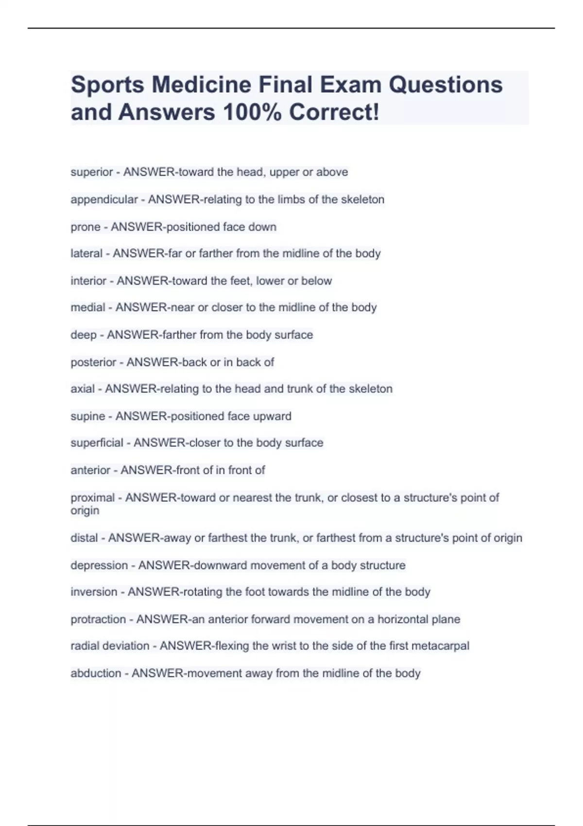 Sports Medicine Final Exam Questions and Answers 100% Correct!