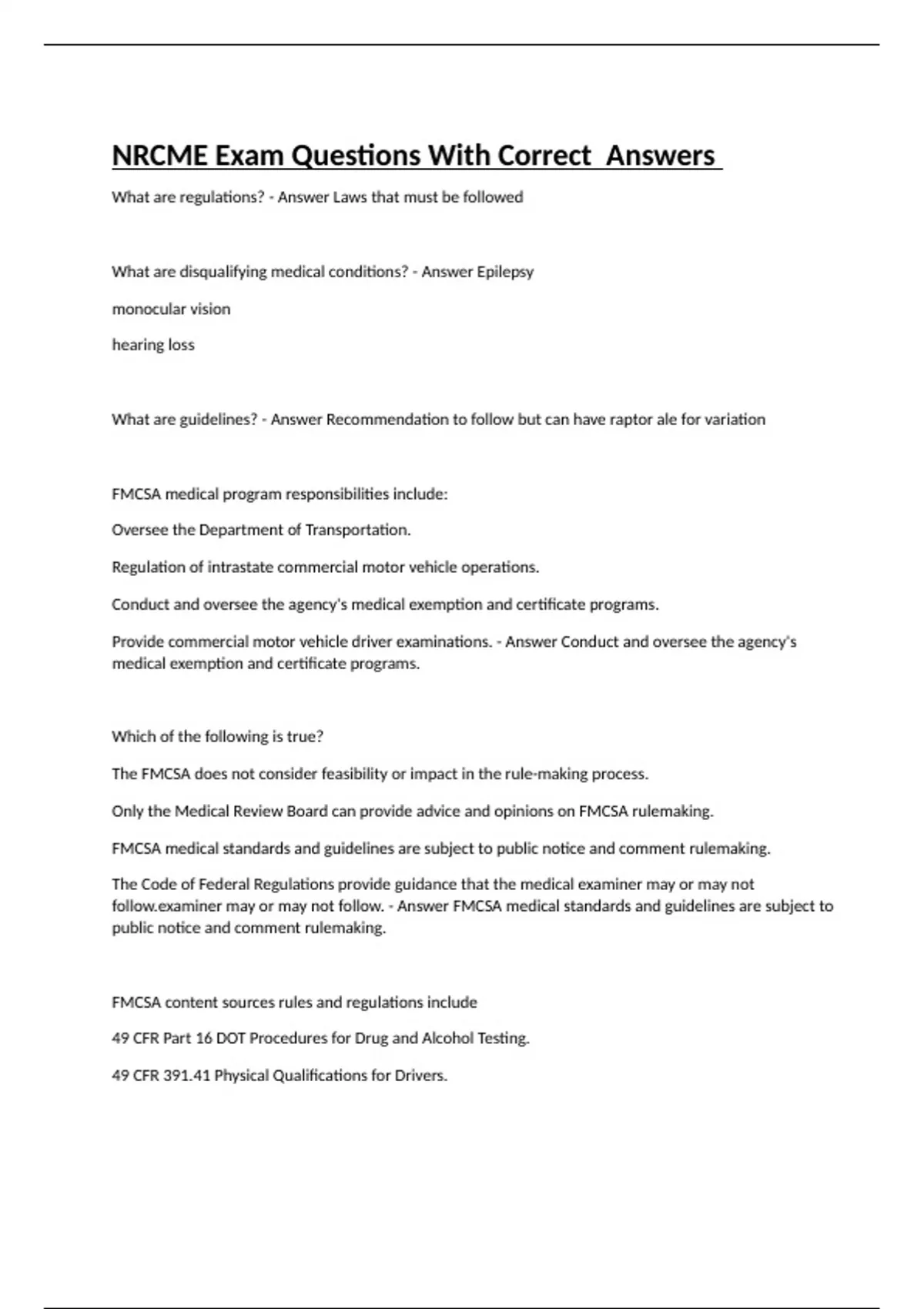 NRCME Exam Questions With Correct Answers