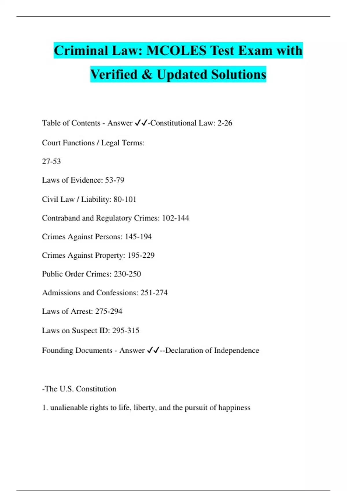 Criminal Law: MCOLES Test Exam with Verified & Updated Solutions