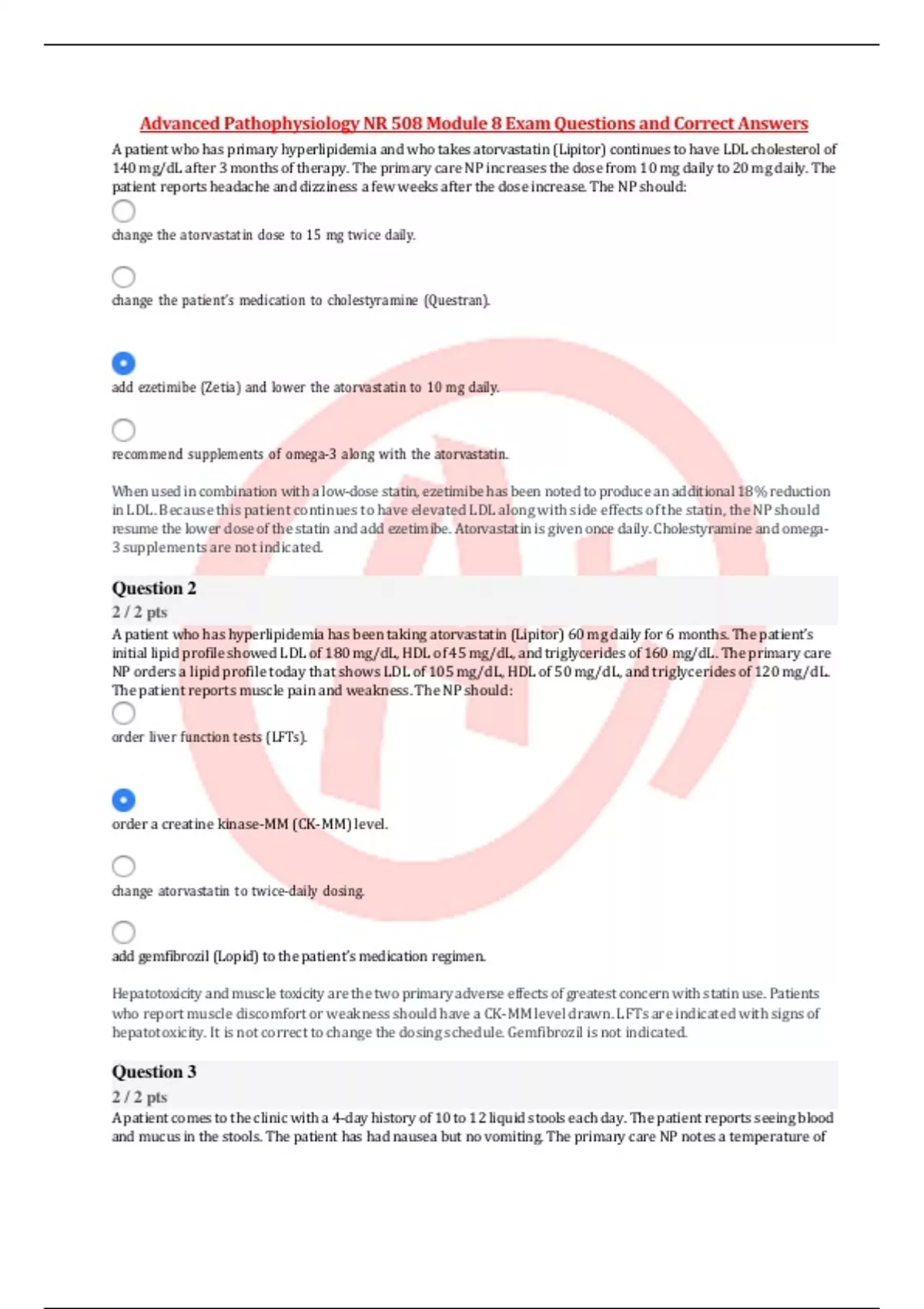 Advanced Pathophysiology NR 508 Module 8 Exam Questions and Correct Answers