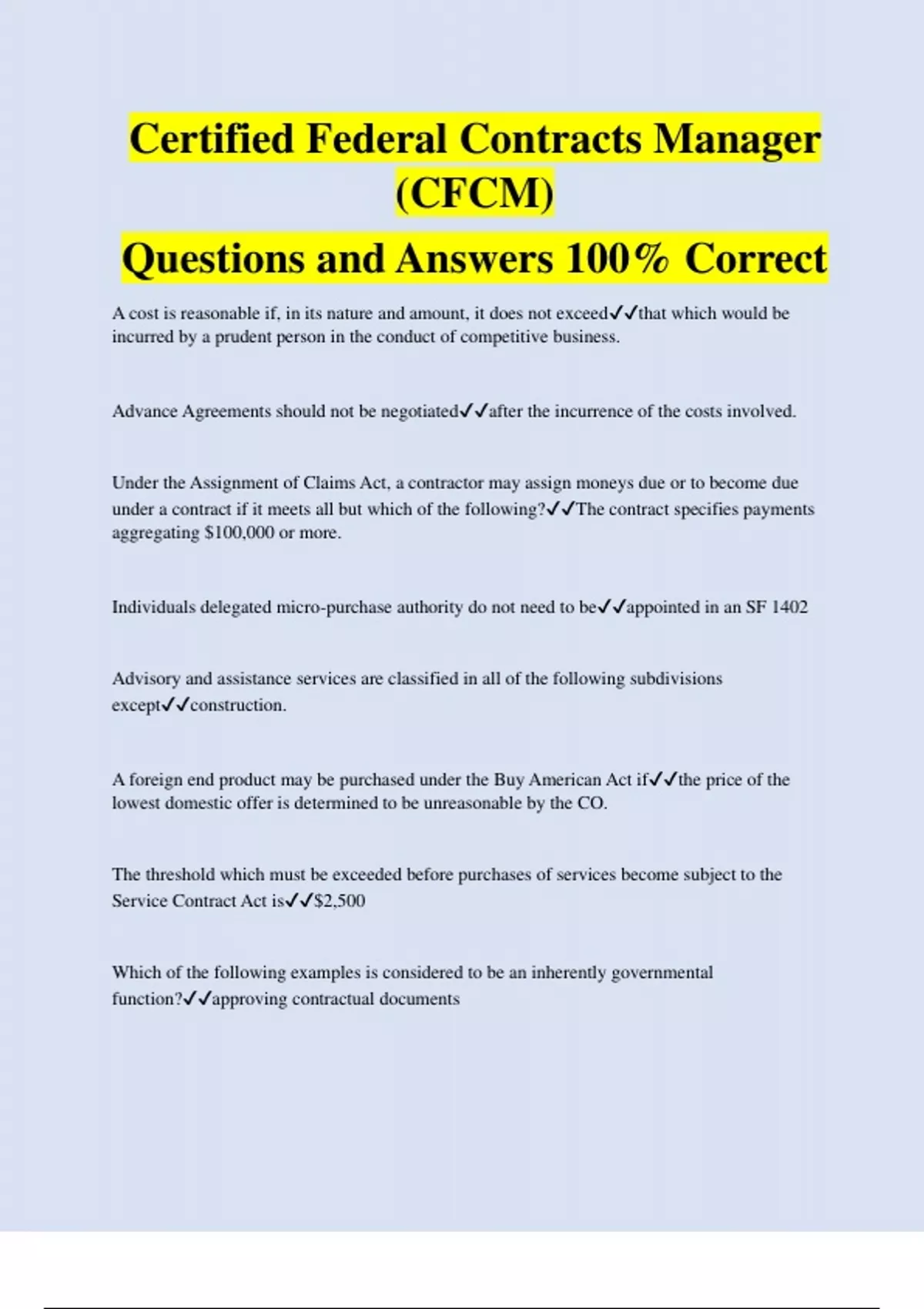 Certified Federal Contracts Manager (CFCM) Questions and Answers 100% Correct