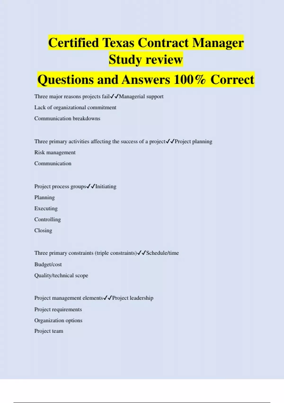 Certified Texas Contract Manager Study review Questions and Answers 100% Correct