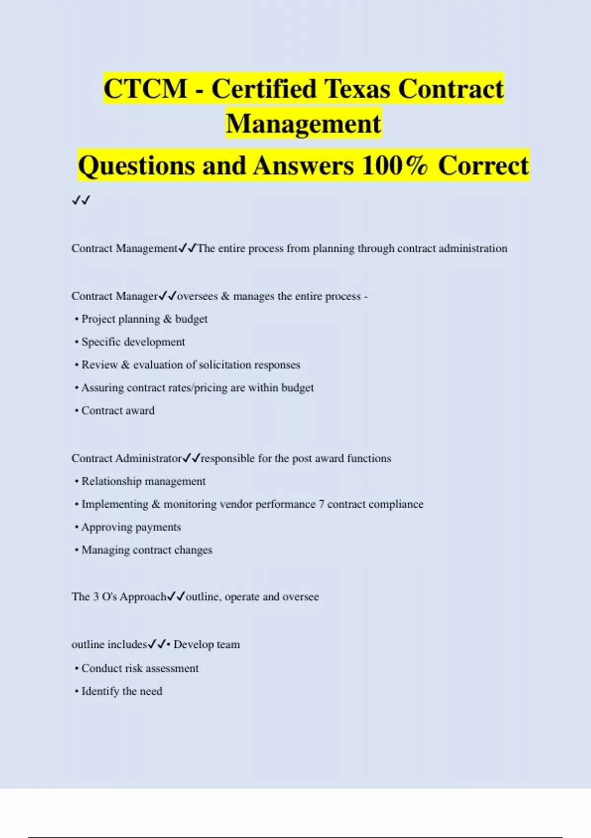 CTCM - Certified Texas Contract Management Questions and Answers 100% Correct