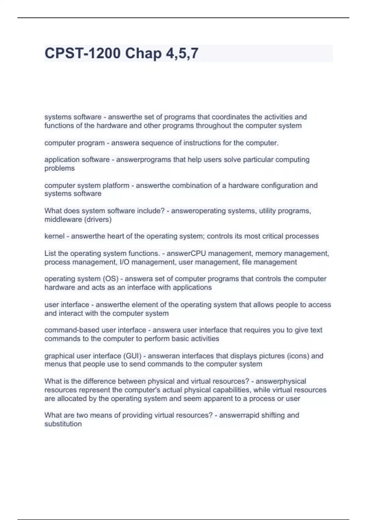 CPST-1200 Chap 4,5,7