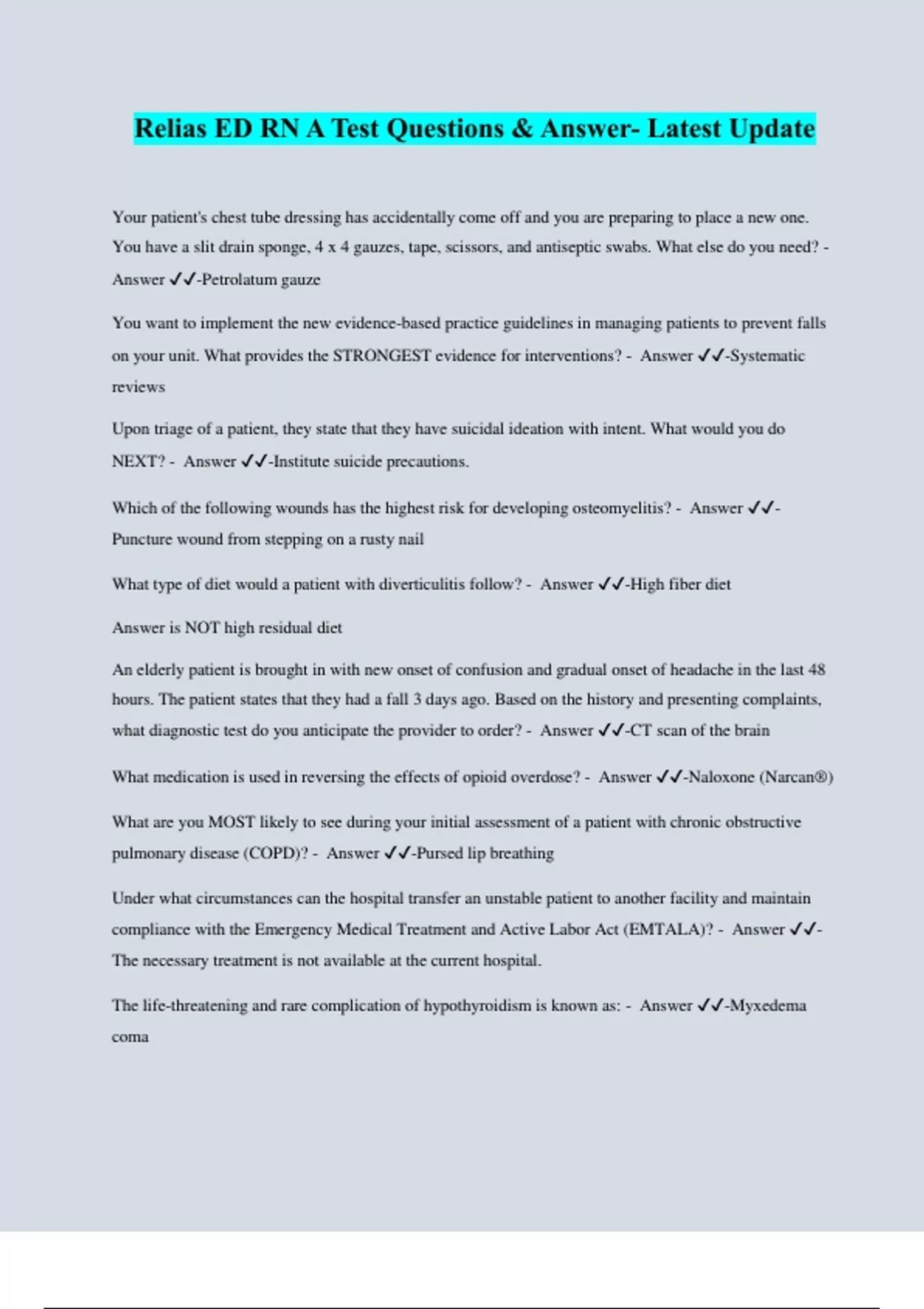 Relias ED RN A Test Questions & Answer- Latest Update