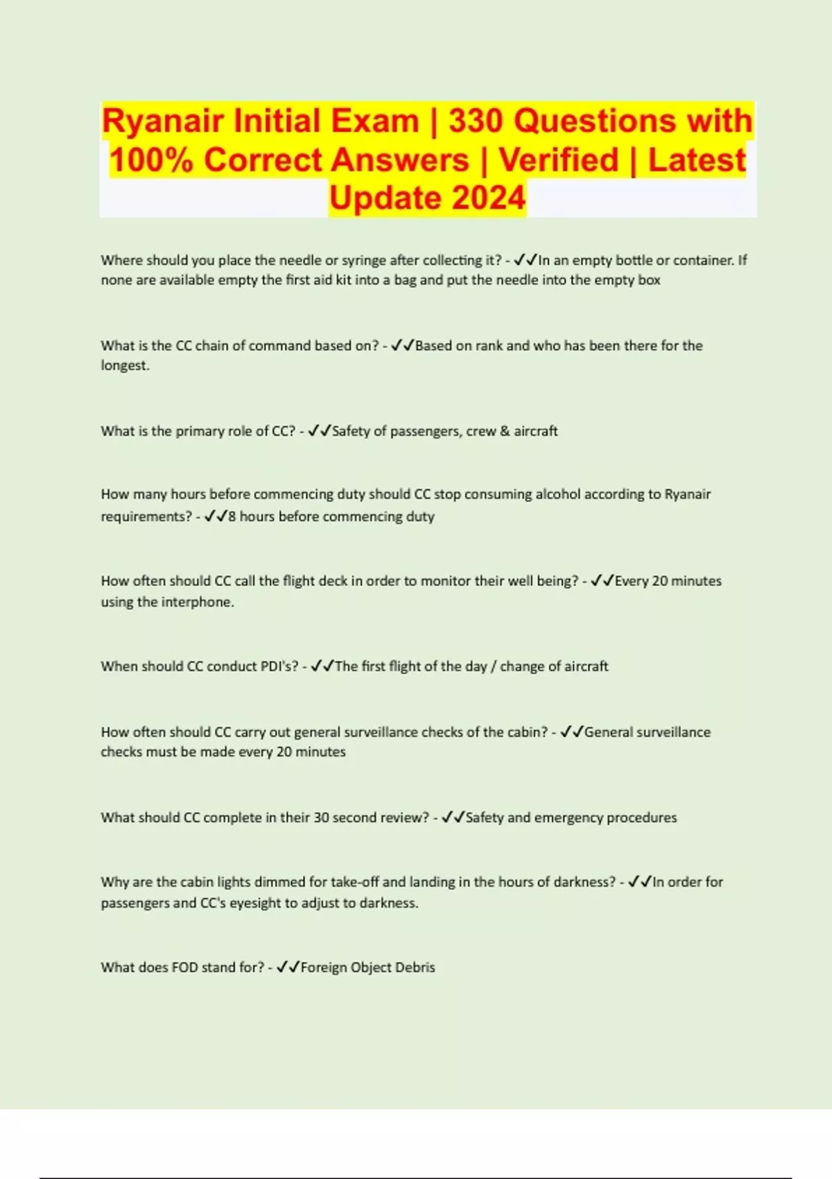 Ryanair Initial Exam | 330 Questions with 100% Correct Answers | Verified | Latest Update 2024