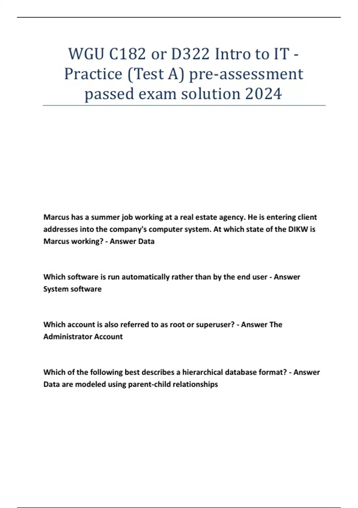 WGU C182 or D322 Intro to IT - Practice (Test A) pre-assessment passed exam solution 2024