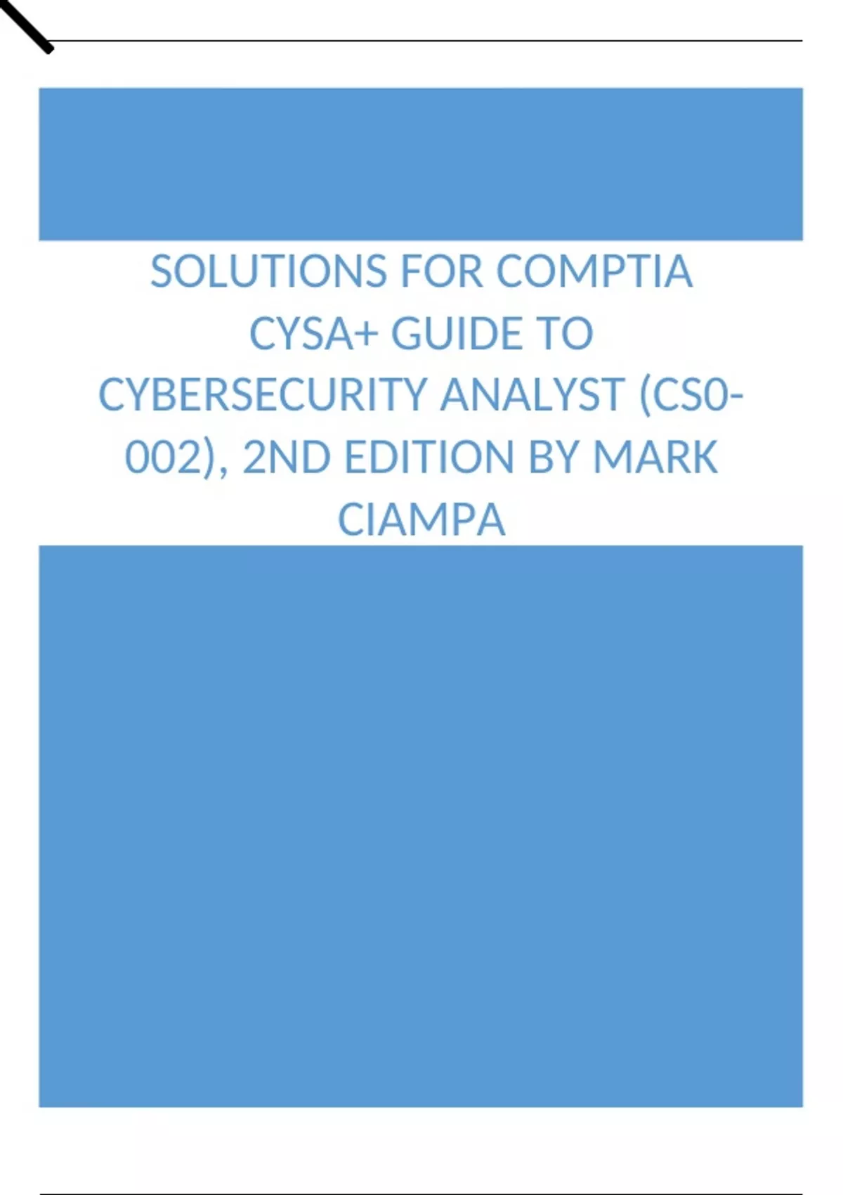 Solutions For CompTIA CySA+ Guide to Cybersecurity Analyst (CS0-002), 2nd Edition by Mark CSolutions For CompTIA CySA+ Guide to Cybersecurity Analyst (CS0-002), 2nd Edition by Mark C