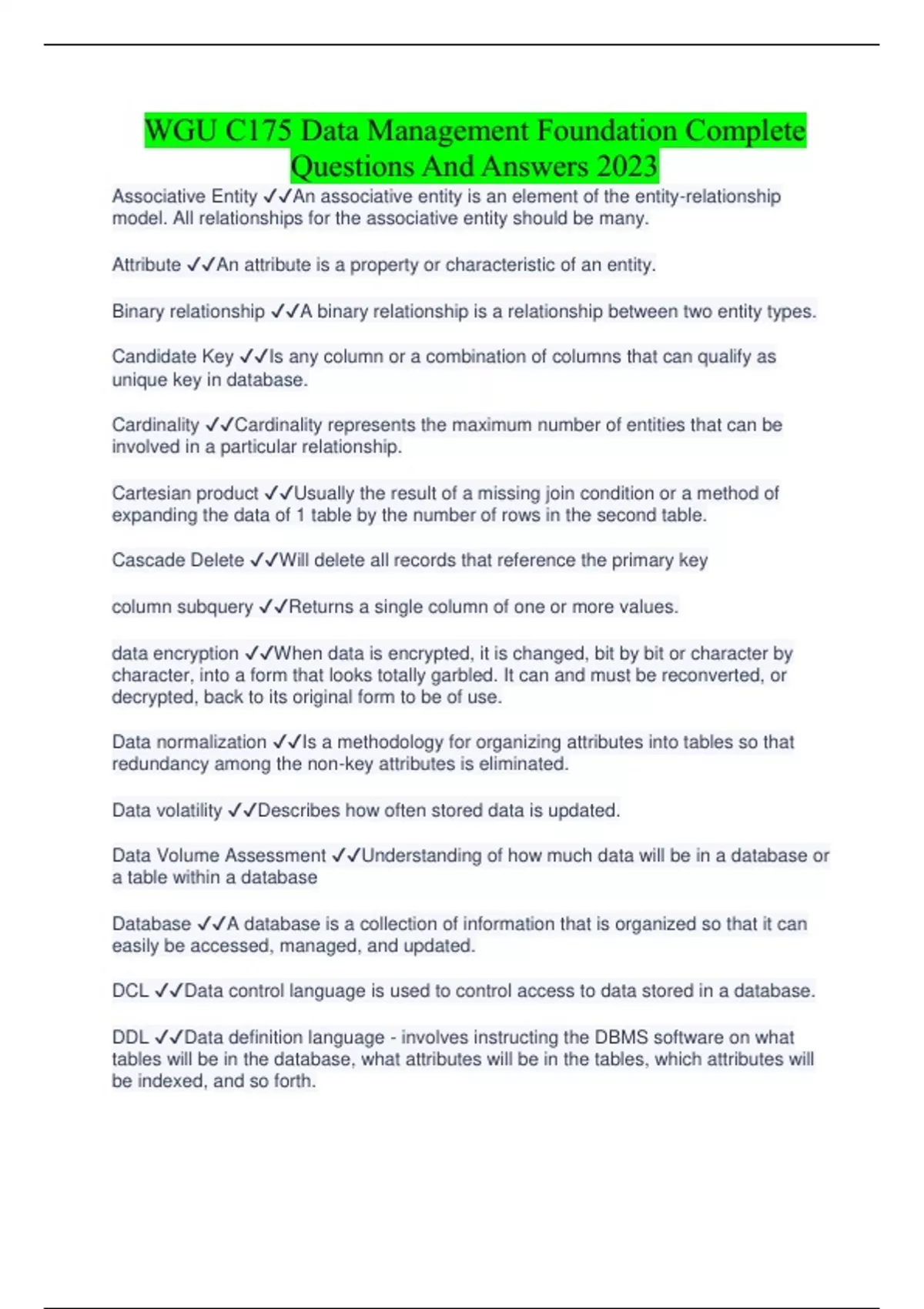 WGU C175 Data Management Foundation Complete Questions And Answers 2023