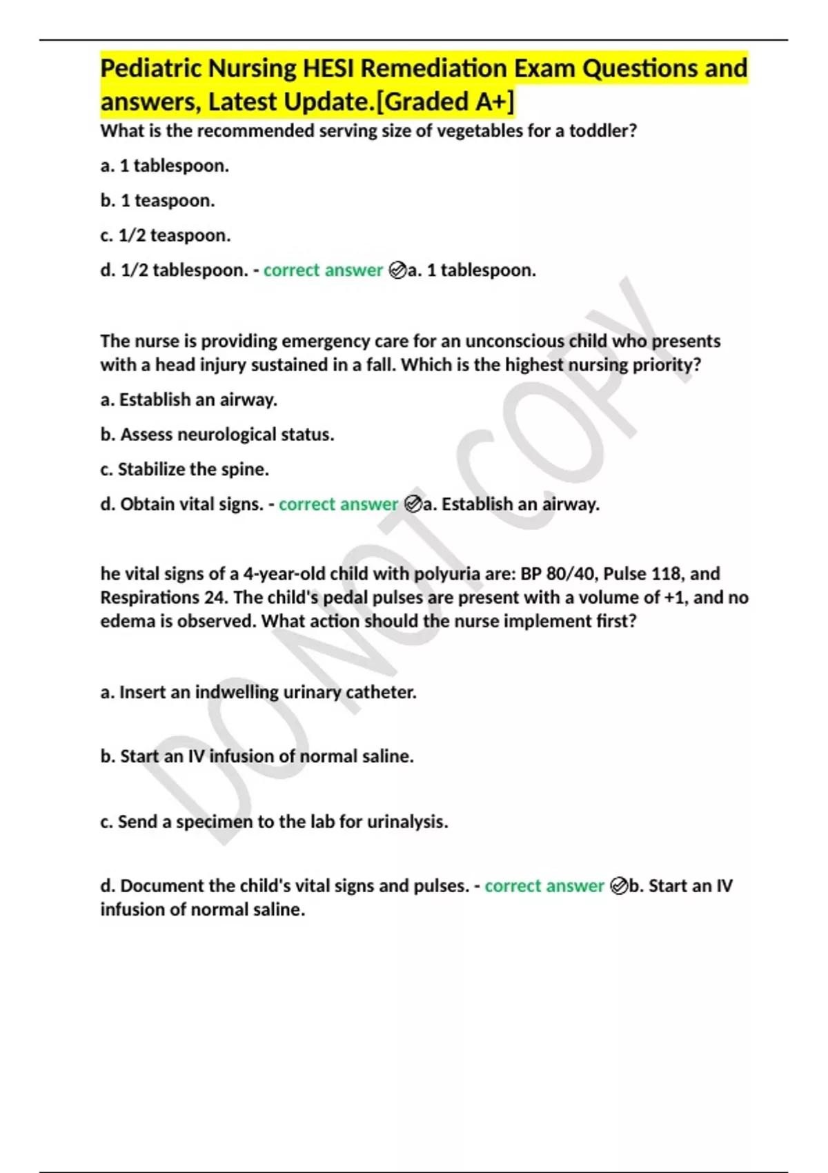 - Pediatric Nursing HESI