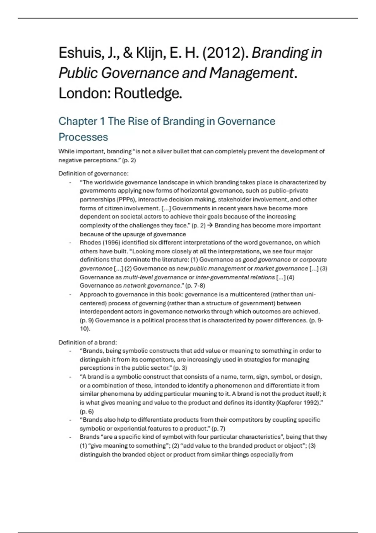 - “Governance involves a wide variety of perceptions” (p. 11): Branding can be used for