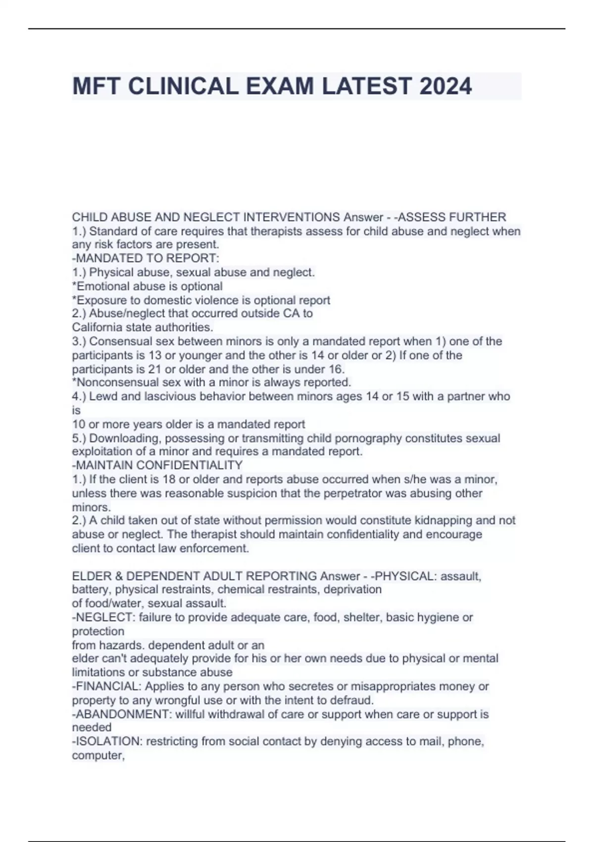 MFT CLINICAL EXAM LATEST 2024