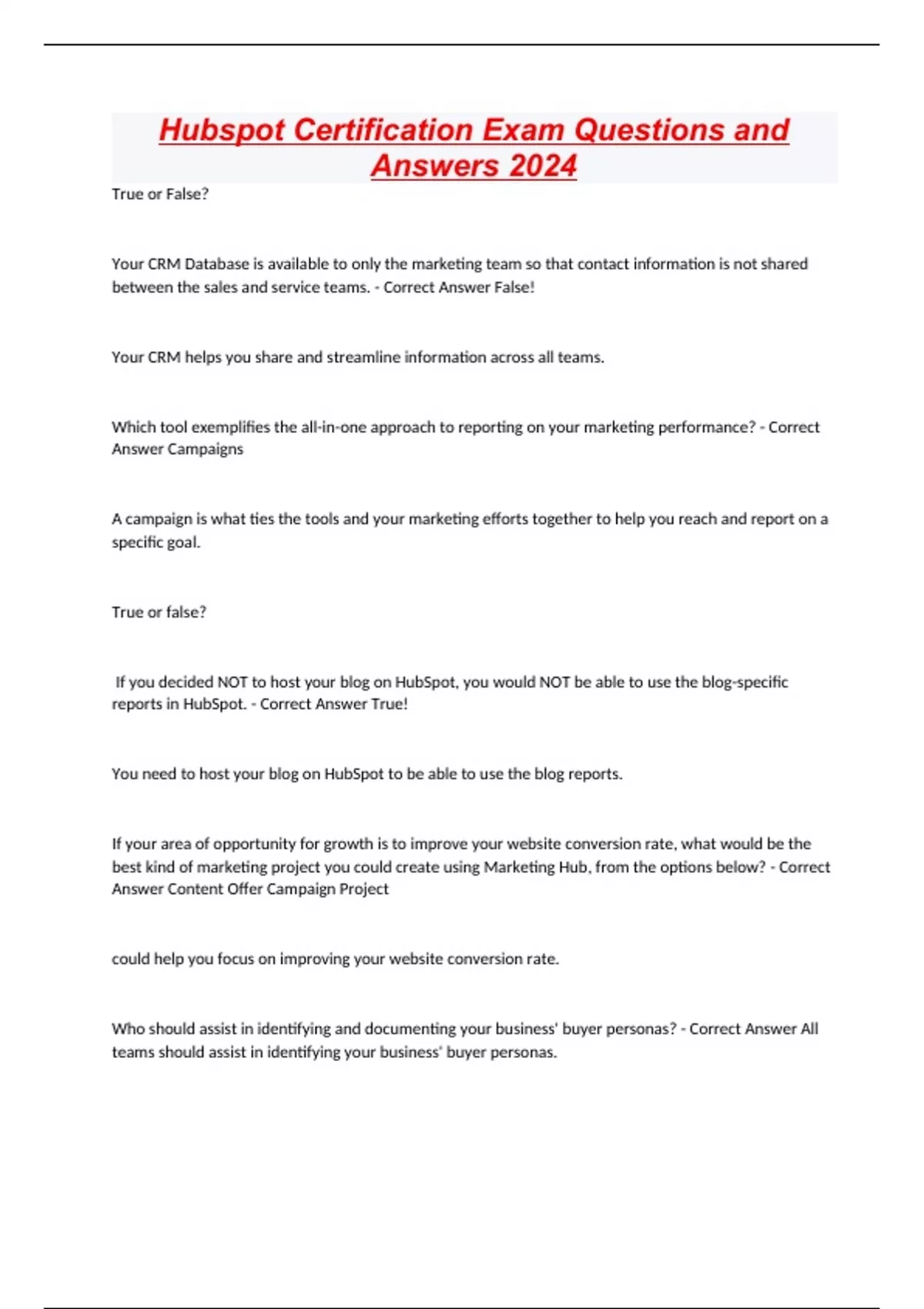 True or False? Your CRM Database is available to only the marketing team so that contact information is not shared between the sales and service teams. - Correct Answer False! Your CRM helps you share and streamline information across all teams.