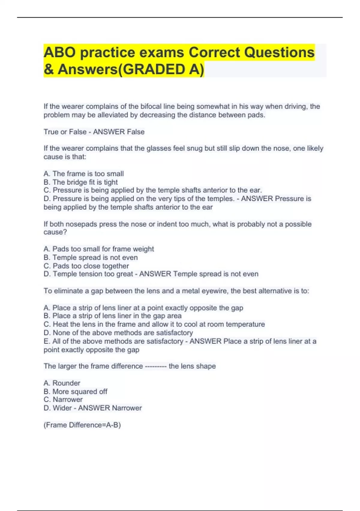ABO practice exams Correct Questions & Answers(GRADED A)