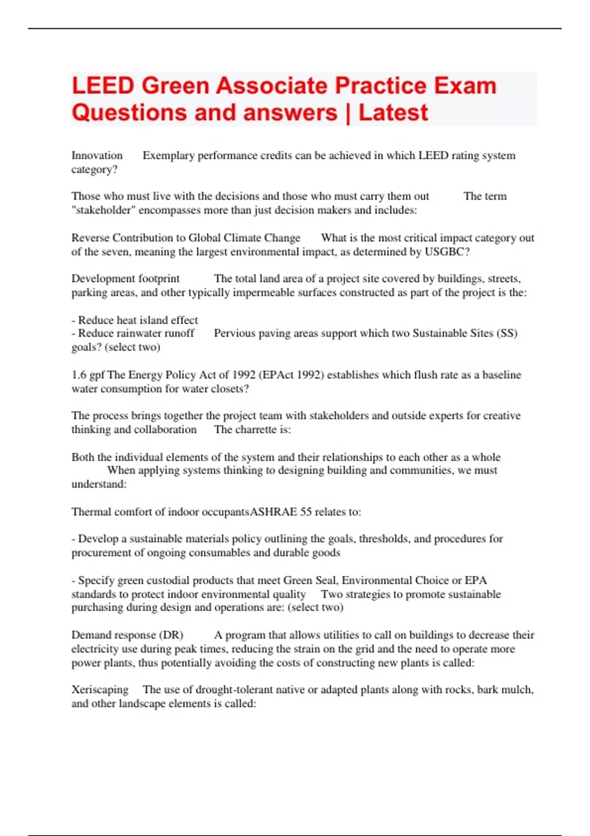 leed green associate practice exam questions and a