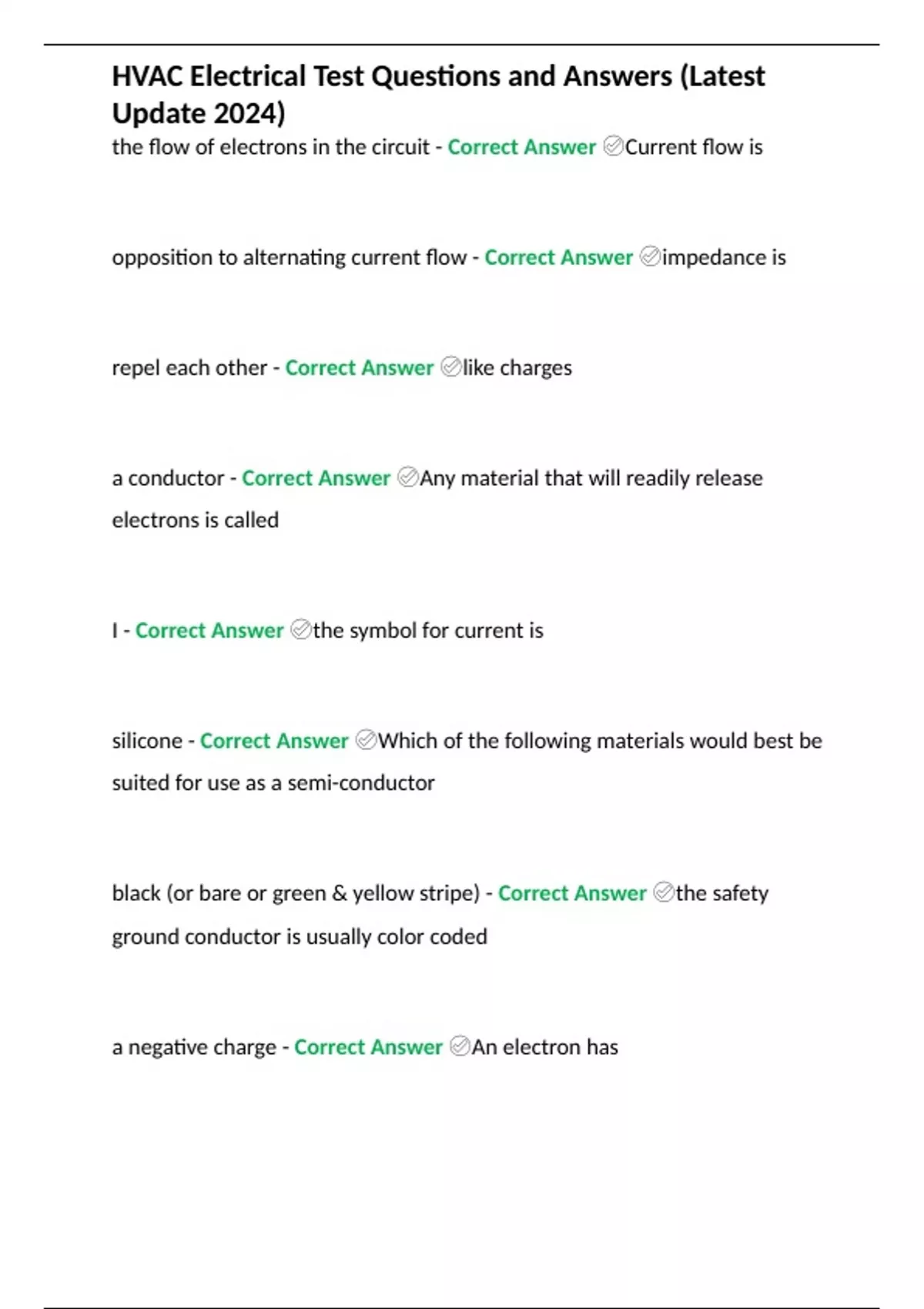 HVAC Electrical Test Questions and Answers (Latest Update 2024)