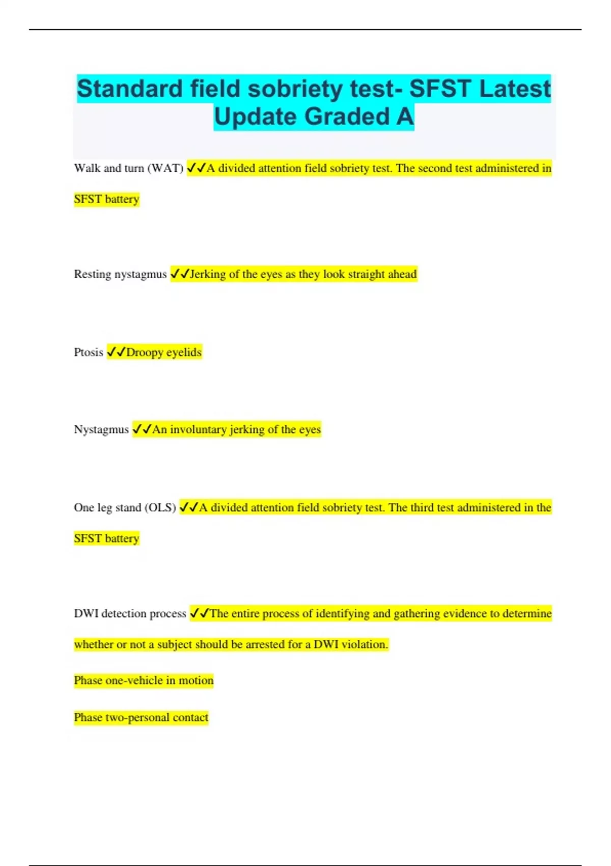 SFST Exam Latest 2024 Already Graded A