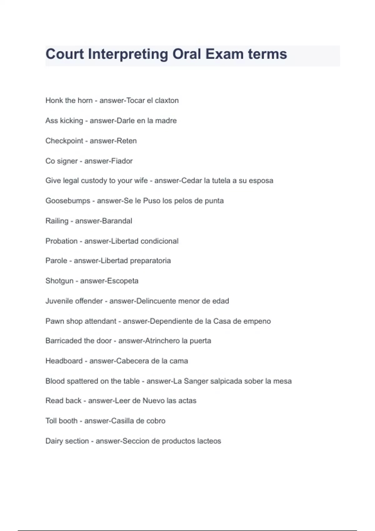 - Court Interpreting Oral Exm terms