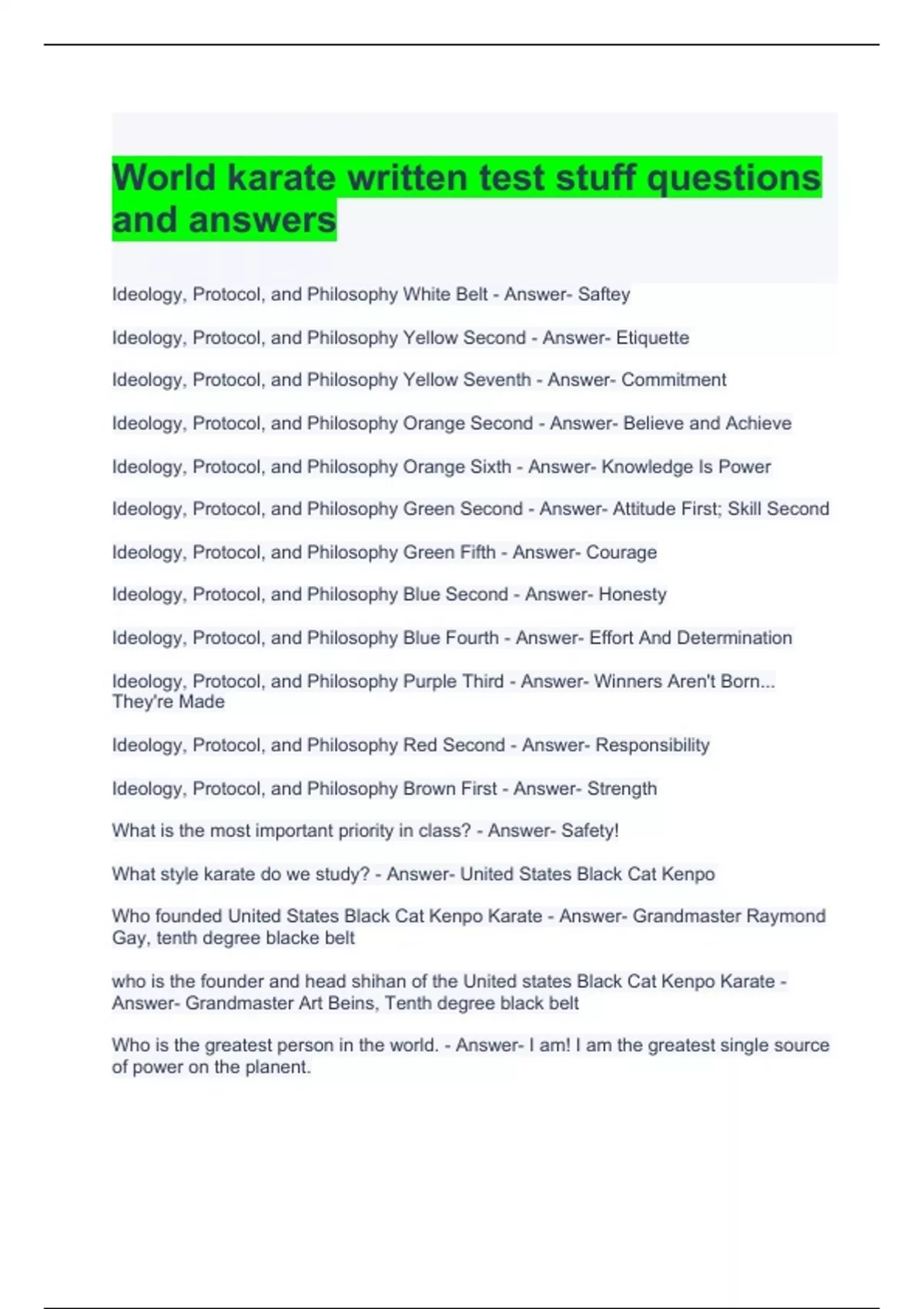 World karate written test stuff questions and answers