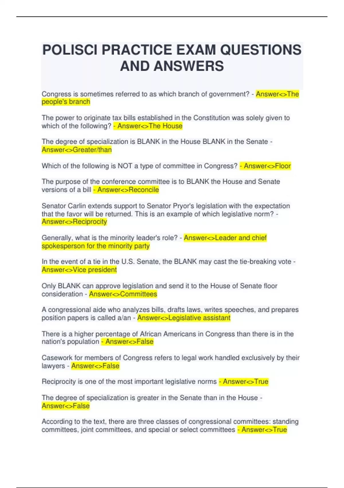 POLISCI PRACTICE EXAM QUESTIONS AND ANSWERS