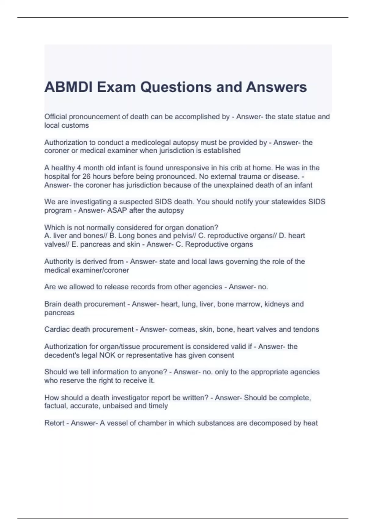 ABMDI Exam Questions and Answers-Graded A