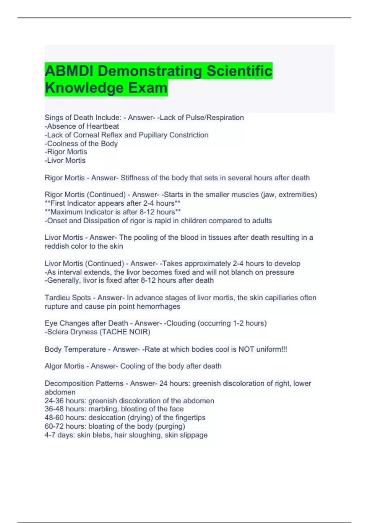 ABMDI Demonstrating Scientific Knowledge Exam Questions and Answers