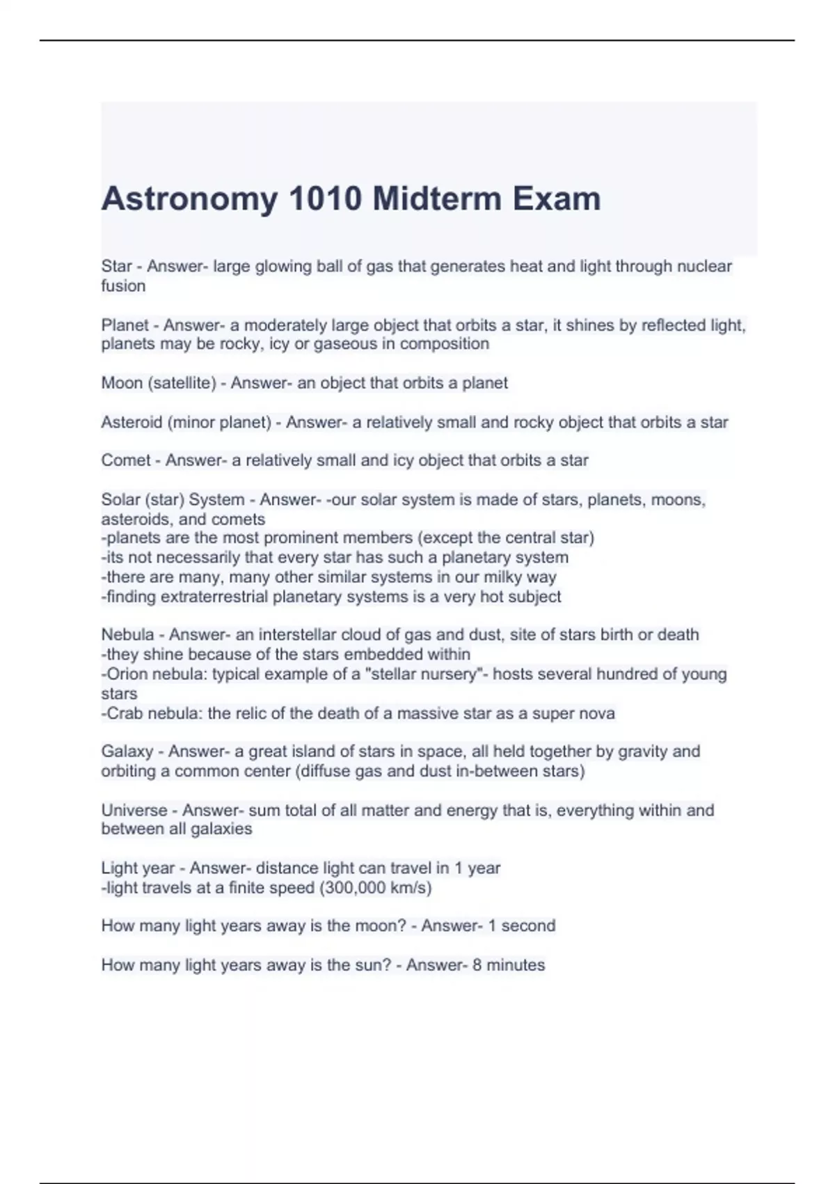 Astronomy 1010 Midterm Exam Questions with correct Answers