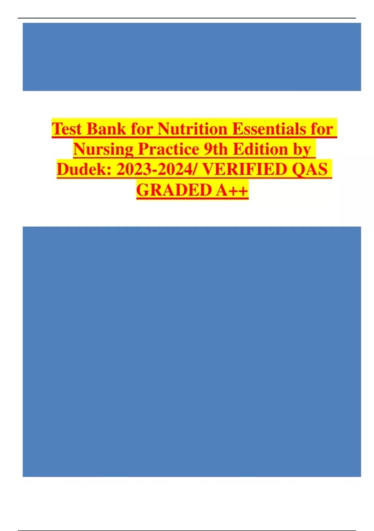 Test Bank for Nutrition Essentials for Nursing Practice 9th Edition by Dudek Test Bank ALL Chapters Included ( 1 - 24) ISBN-13: 9781975161125 |COMPLETE TEST BANK |Guide A+.