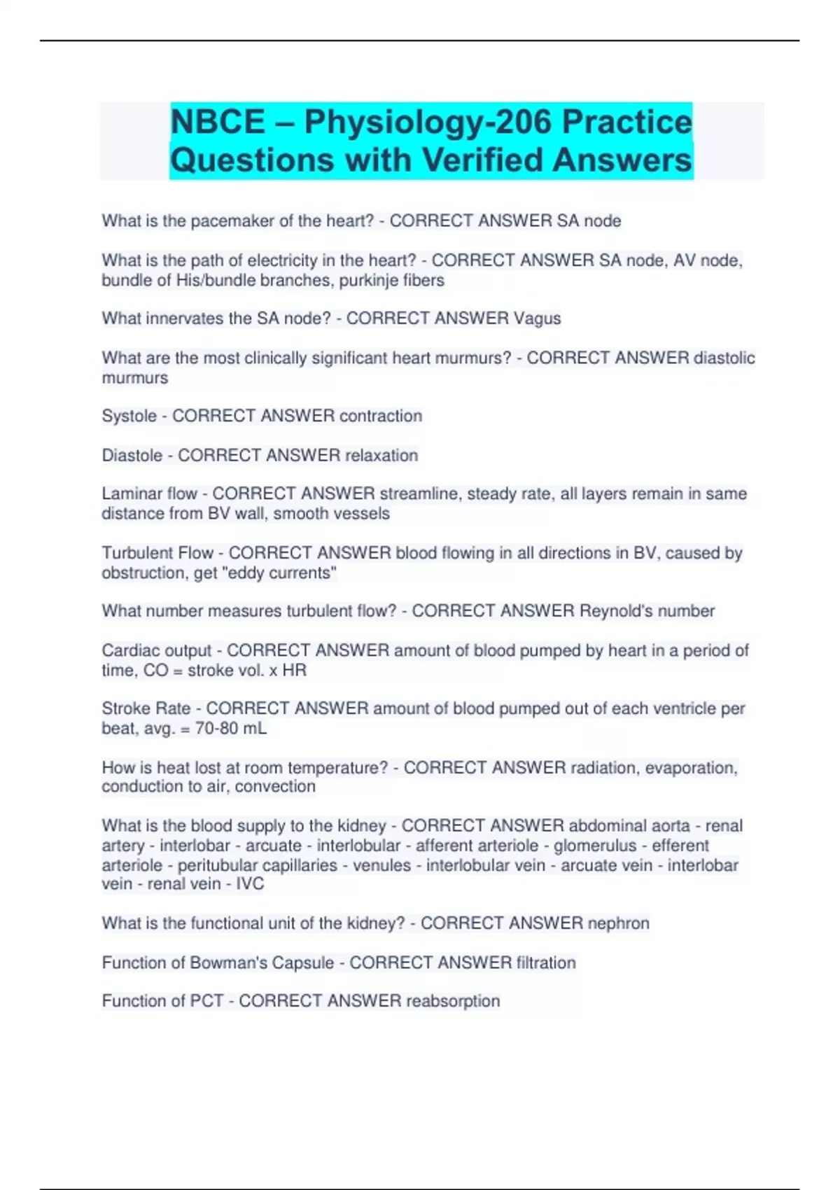 NBCE – Physiology-206 Practice Questions with Verified Answers