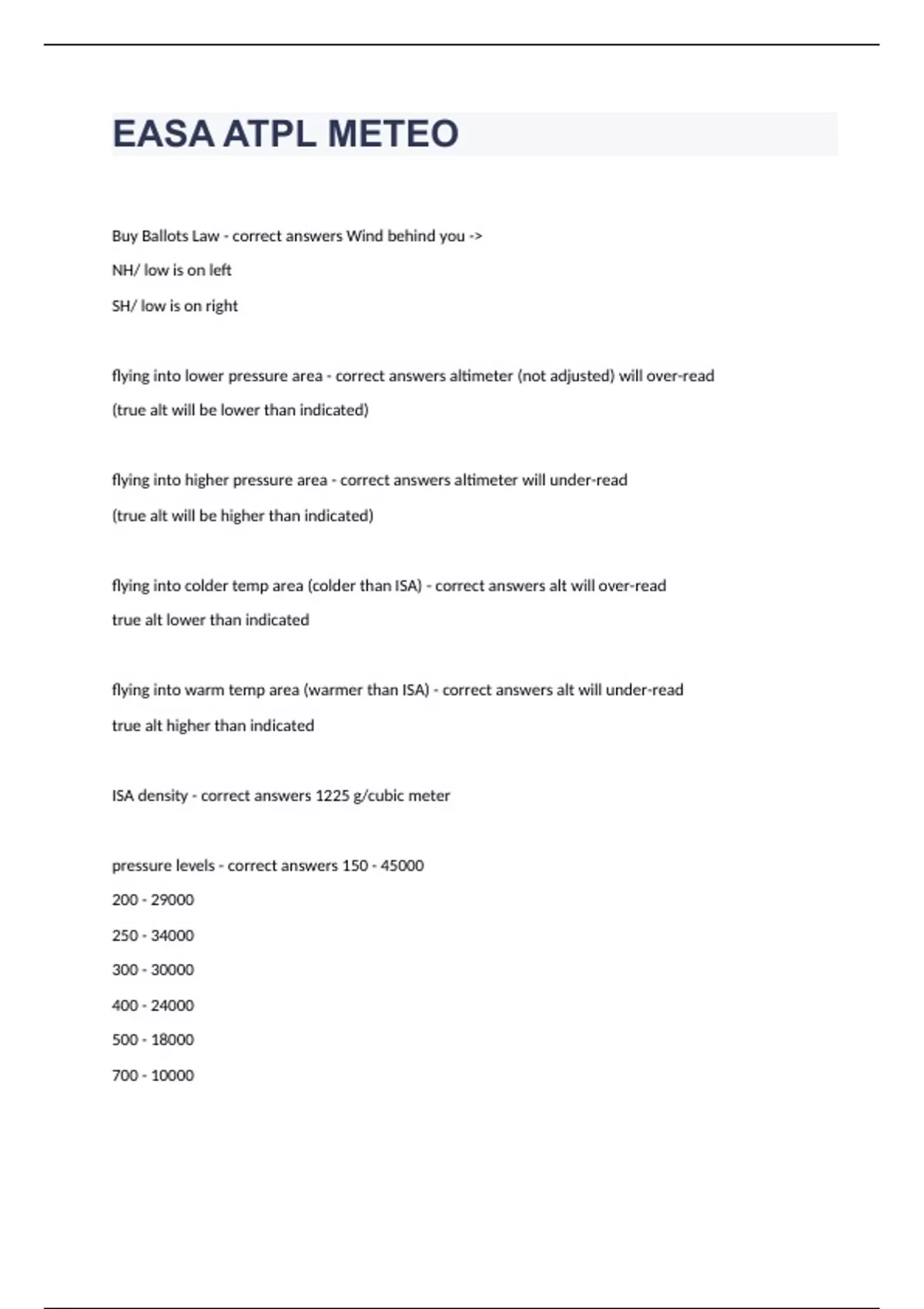 EASA ATPL METEO correctly answered graded A+ 2023/2024