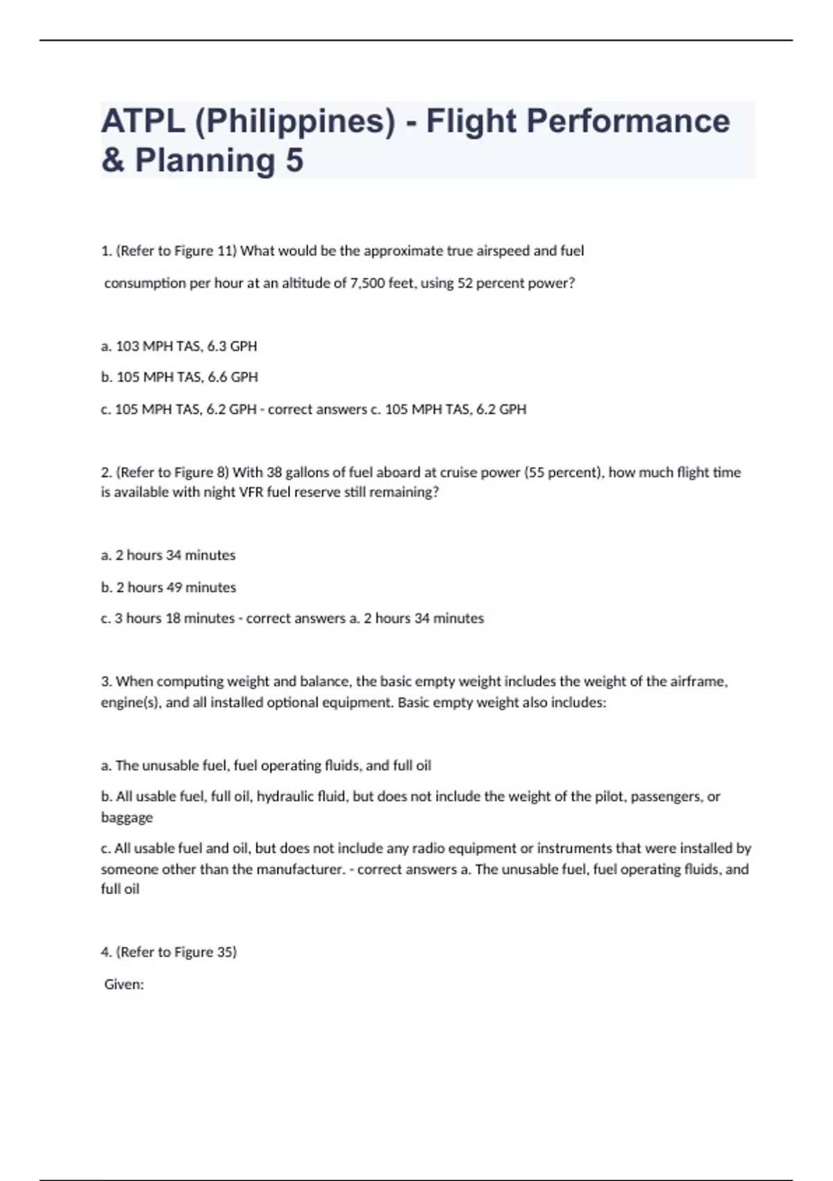ATPL (Philippines) - Flight Performance & Planning 5 questions well answered rated A+