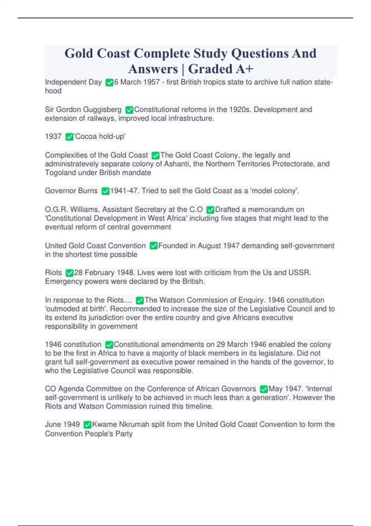 Gold Coast Complete Study Questions And Answers | Graded A+ Gold Coast Complete Study Questions And Answers | Graded A+