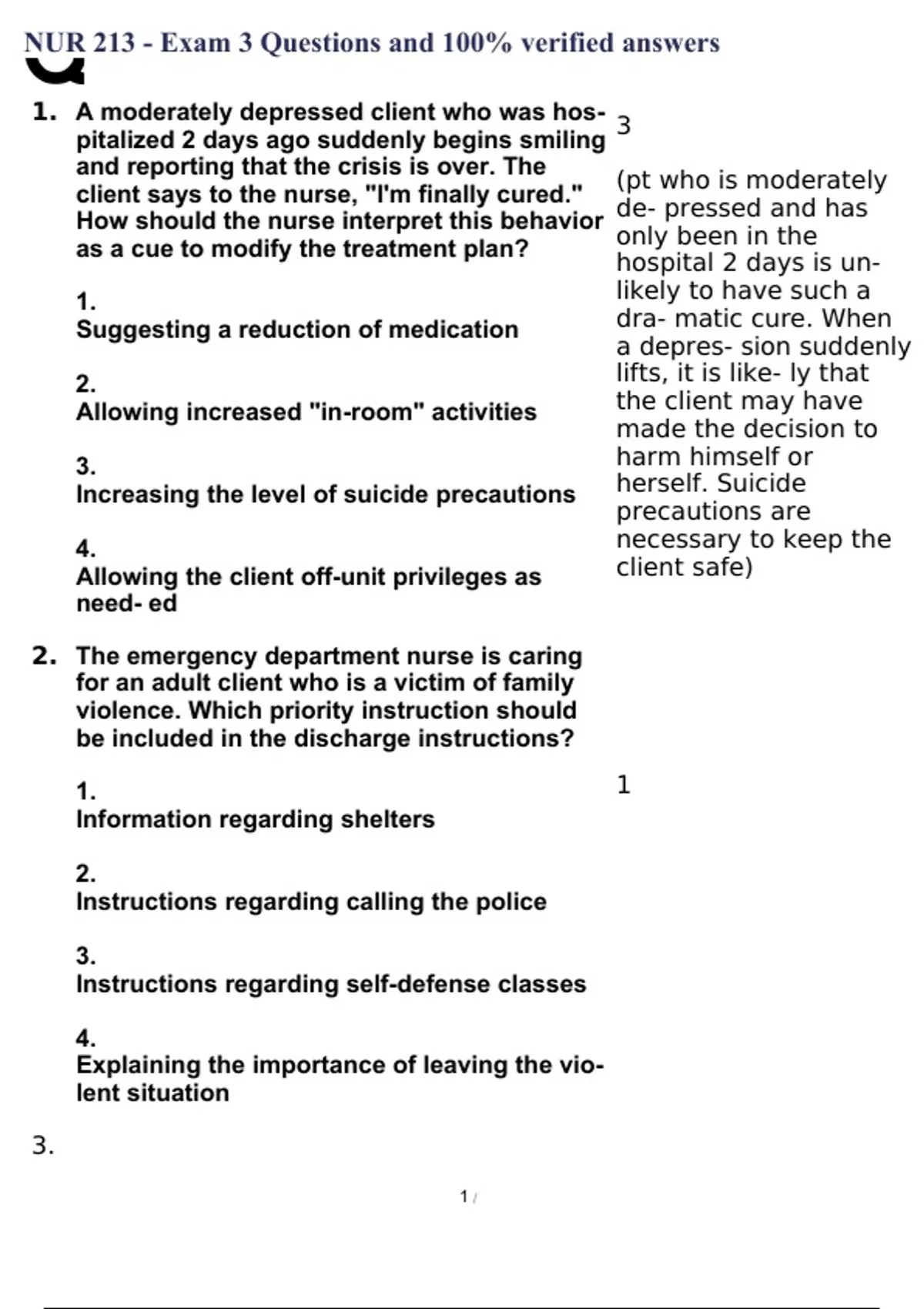 nur 213 exam 3 questions and 100 verified answe
