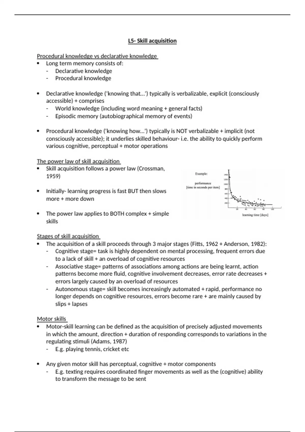 consciously accessible); it underlies skilled behaviour- i.e. the ability to quickly perform