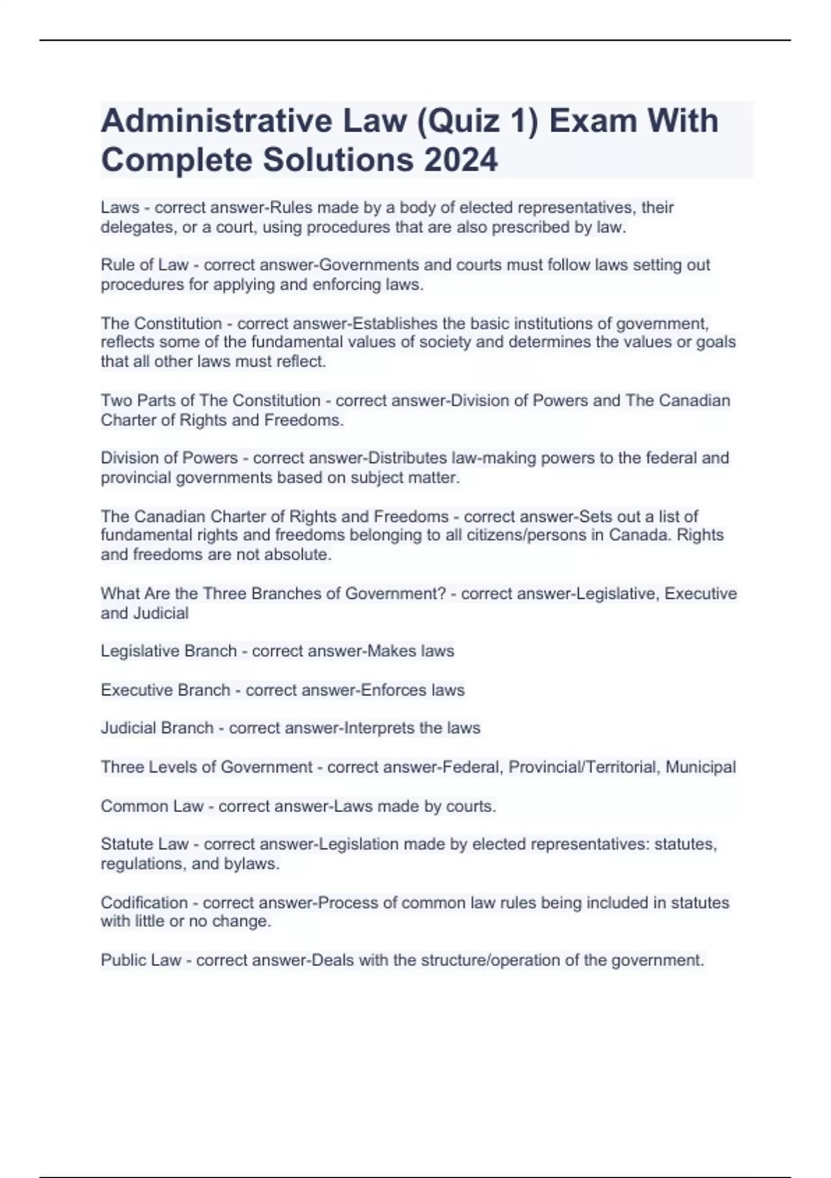 Administrative Law (Quiz 1) Exam With Complete Solutions 2024