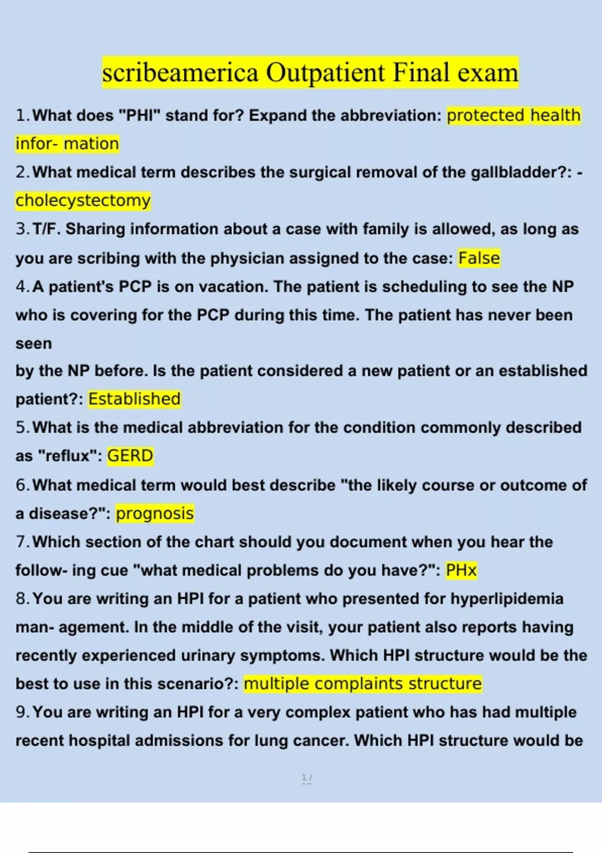 Scribe America Final Outpatient Exam BUNDLED ALL Scribe America Final Exam Study Guide Scribe America Final Exam 2023/2024 with 100% correct answers