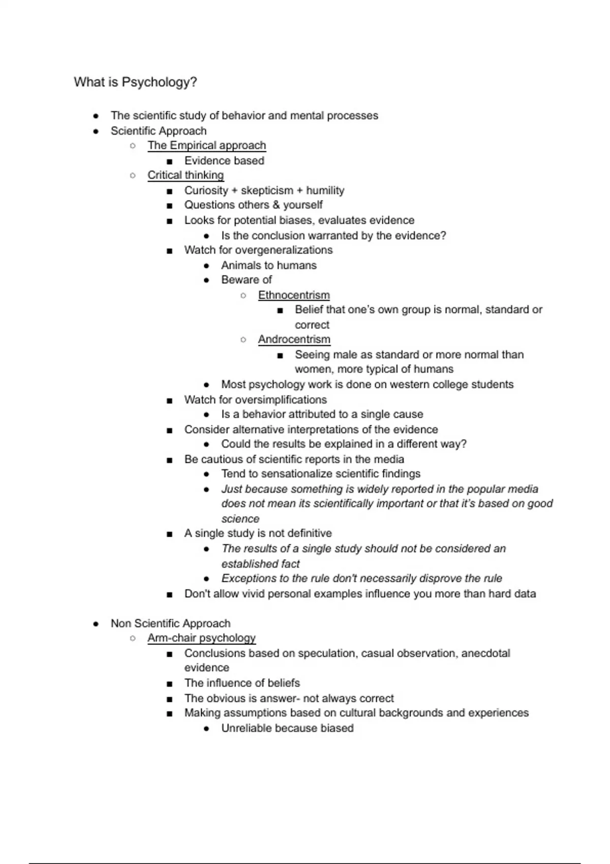 In-depth class notes on the first introduction chapter of Psychology