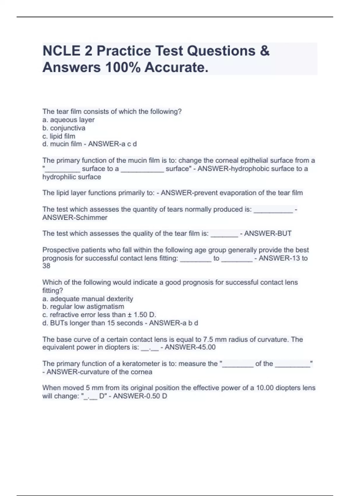 ncle 2 practice test questions answers 100 accu