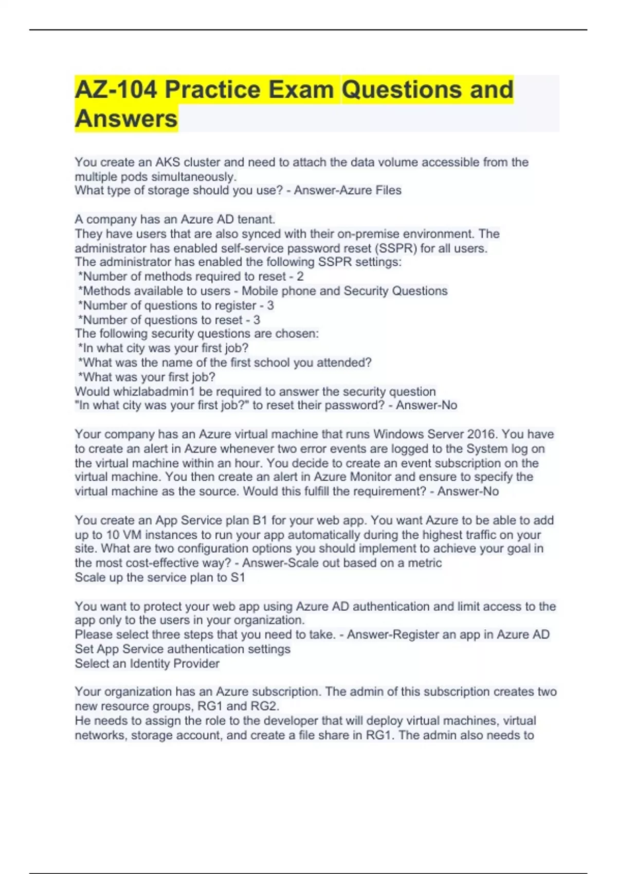 AZ-104 Practice Exam Questions and