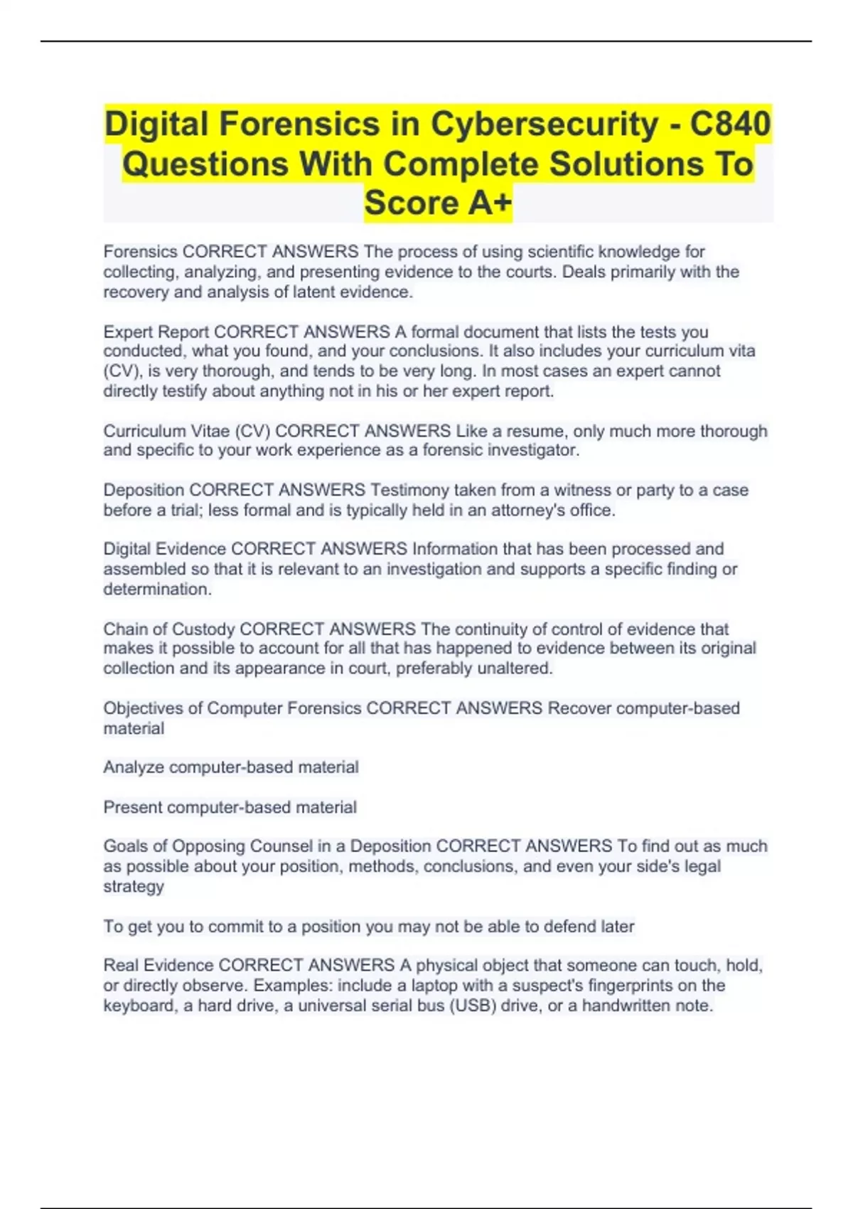 Digital Forensics in Cybersecurity - C840 Questions With Complete Solutions To Score A+